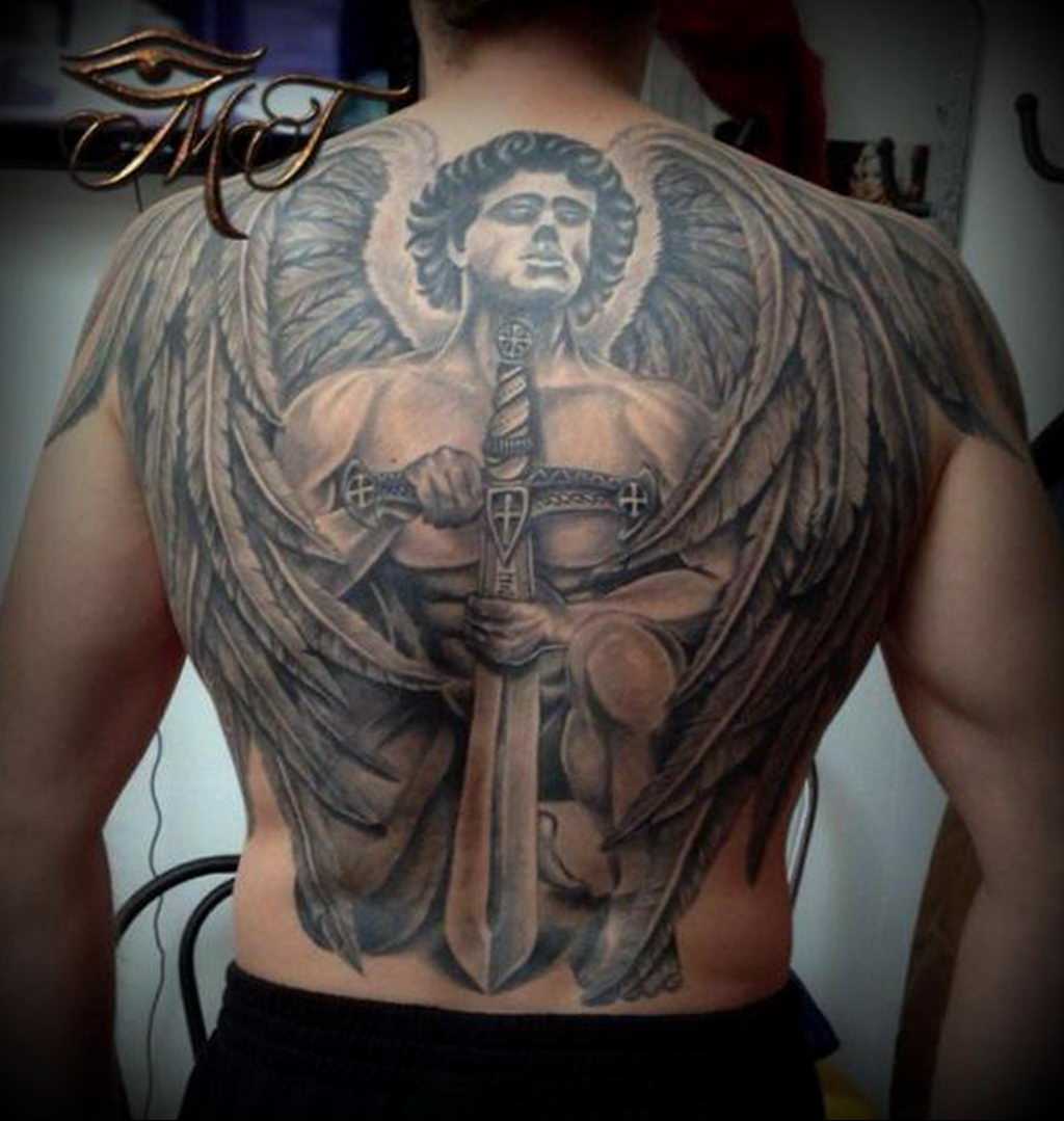 - Спина — это одно из наиболее популярных мест для татуировки ангела с мечом. Это связано с тем, что на спине можно создать большой и красивый рисунок. Крылья ангела могут простираются от плеч к пояснице, а меч может быть размещен в центре рисунка;