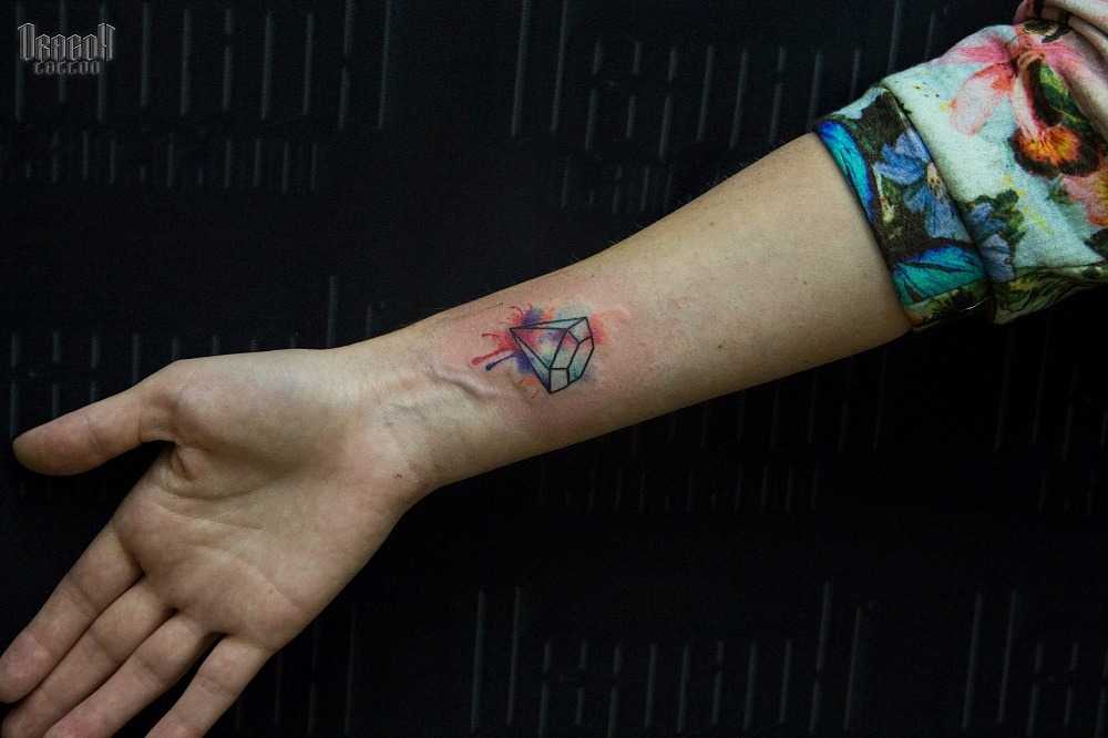 Редко тату алмаз на запястье