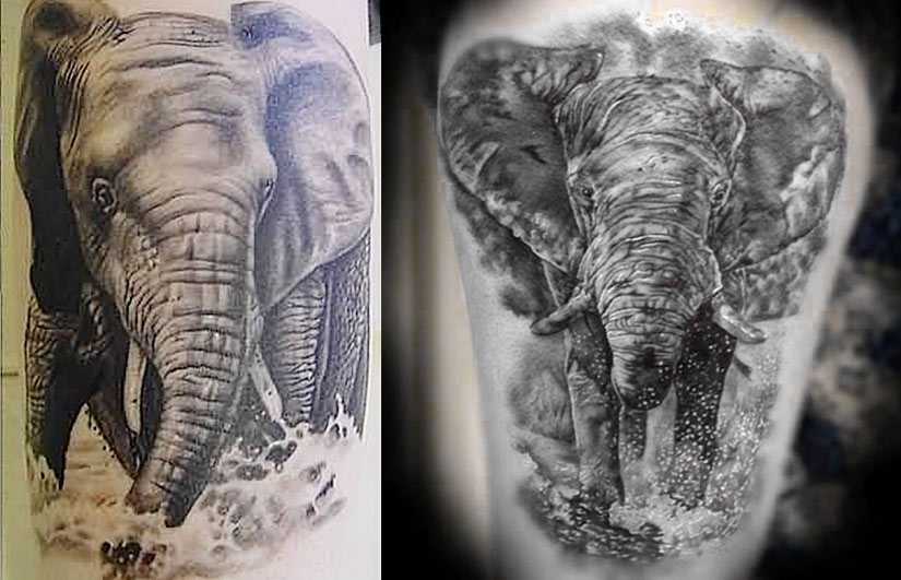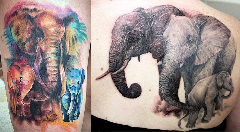 И если вы сможете выдержать боль, то это отличная идея, чтобы набить нескольких слонов — например мать с детенышами или пару.