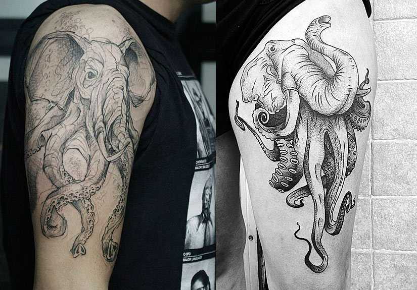 Татуировка слон проявляется во многих вариациях, и вы найдете большое количество имеющихся эскизов, и поэтому вы можете быть уверены, что найдете то, что подойдет вашими вкусами и предпочтениями.