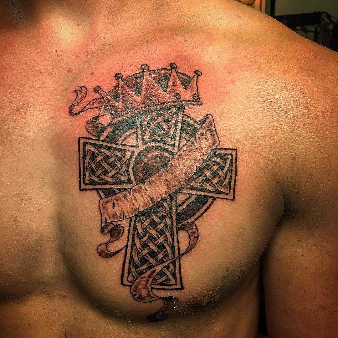 Кельтский крест – носитель подобного тату может быть вовсе не религиозным человеком, а скорее, наоборот — атеистом. Уникальность кельтского креста состоит в особом орнаменте, сплетающемся в сложный узел, не имеющий ни начала ни конца. Таким образом, получаем смысловое значение кельтского крестика – бесконечность в развитии человека, в первую очередь в духовном смысле, которое не прекращается, подобно замкнутому орнаменту, в течение всей жизни человека.