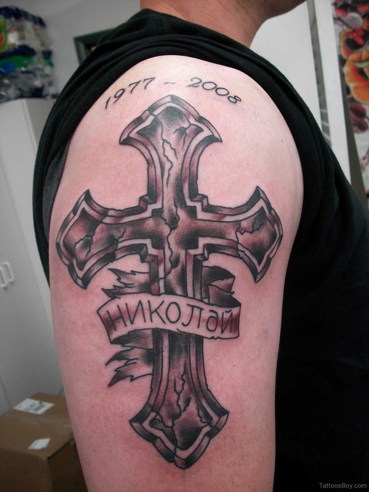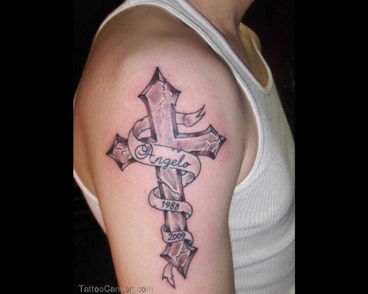 Христианские похоронные ритуалы дали еще одно значение татуировке креста. Изображенный на плече или руке могильный крест с подписью напоминает о потере близкого человека.