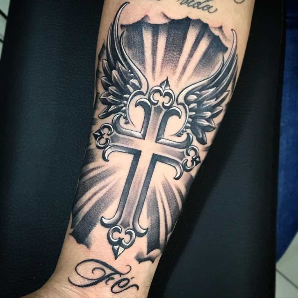 Как правило, мужские тату с крестом на предплечье массивные, объемные. Нередко делают даже цветной вариант татуировки. Однако в этом случае следует помнить, что со временем ее нужно будет корректировать и обновлять, поскольку со временем привлекательность и насыщенность оттенков будет меркнуть. Маленькие тату целесообразнее набивать на пальцах либо на кисти рук. На предплечье они будут выглядеть немного неуместно.