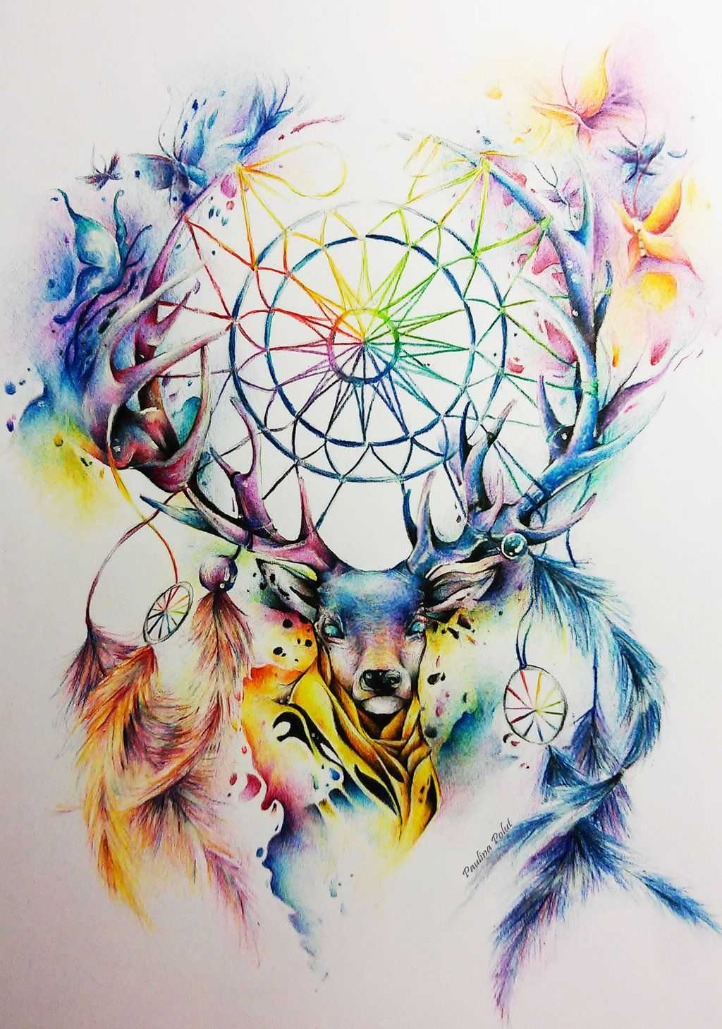 Ловец снов. Очень популярная и эффектная тату, в добавок оберегающая от злых духов;