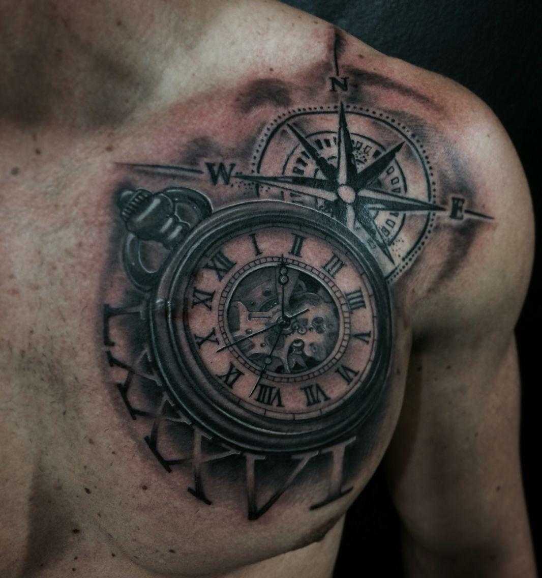 Конкретного места нанесения нет, поэтому татуировка не меняет свой смысл в зависимости от того, где она находится. Но обычно для нее выбирают спину, грудь, плечо или руку, потому что именно там часы смотрятся наиболее красиво и органично.