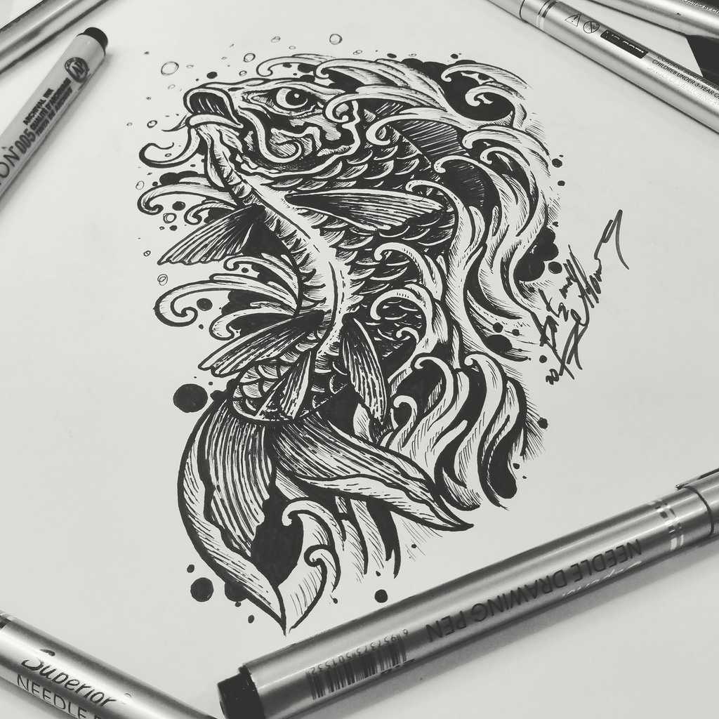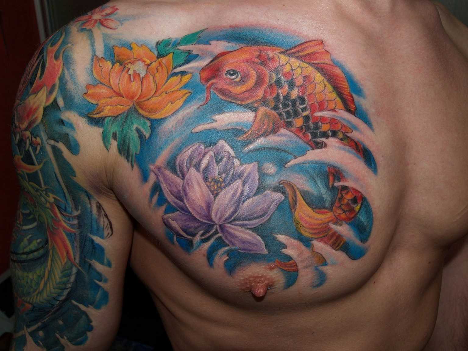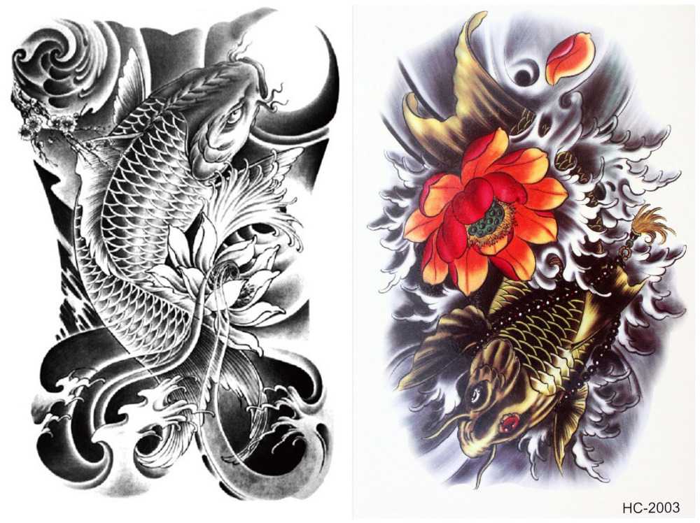 При выборе эскиза можно использовать примеры, которые можно найти в интернете или же обратиться к тату-мастеру. Среди популярных вариантов для девушки отмечают изображение карпа в комбинации с пионами или сакурой. Мужчинам больше подойдет вариант, когда рыба плывет по волнам или же борется с драконом. Считается, что эта татуировка имеет мощную энергетику, поэтому способна влиять на жизнь человека, его характер.
