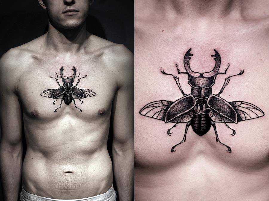 Скарабей — символ, в котором древние египтяне видели воплощение бессмертной души. Считается, что такая татуировка помогает человеку разобраться в своей душе, вернуть её к жизни после тяжёлых переживаний. Смело можно сказать, что в скарабее заключена мудрость мира.