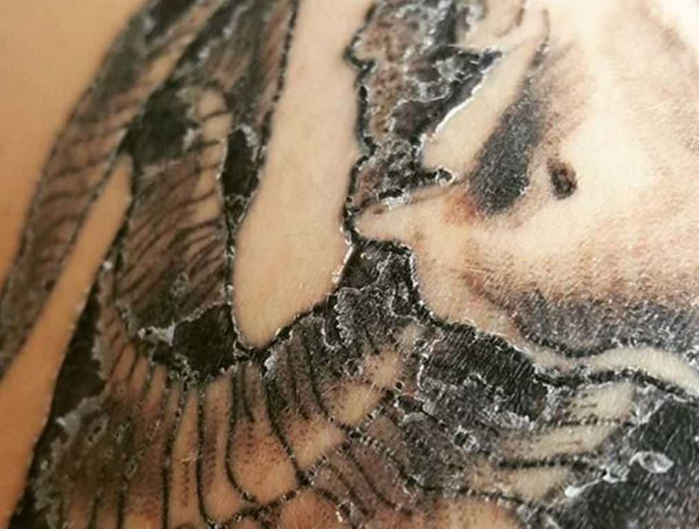 На ее поверхности появляются чешуйки и корочки, которые должны отойти самостоятельно, даже если область с тату начинает чесаться. Отслойка верхних слоев эпителия сопровождается незначительным обесцвечиванием рисунка. Это также считается нормальным явлением — со временем пигмент полностью усваивается и становится более ярким.