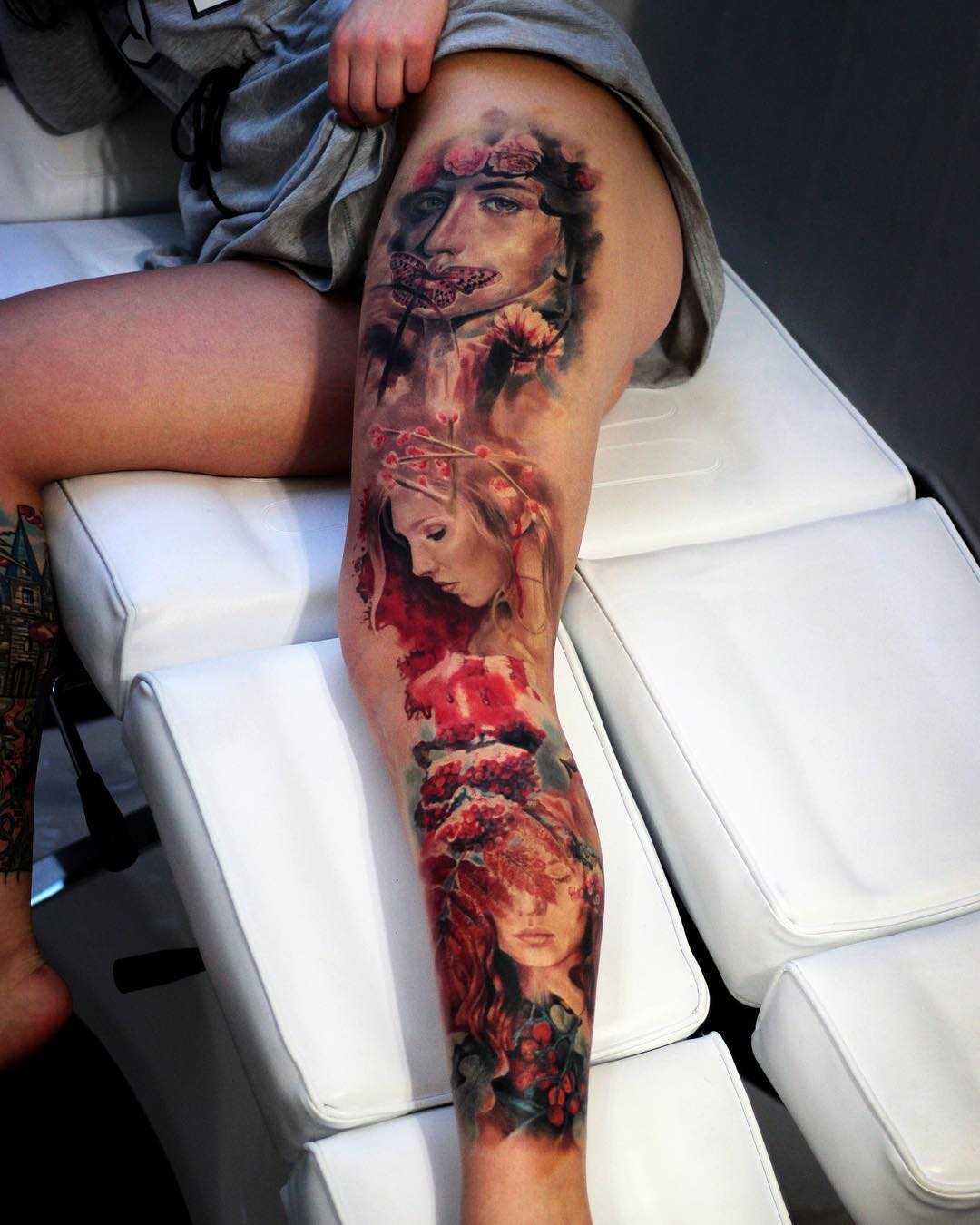 Татуировки для девушек на бедре: важные советы, значения фигур, цвета