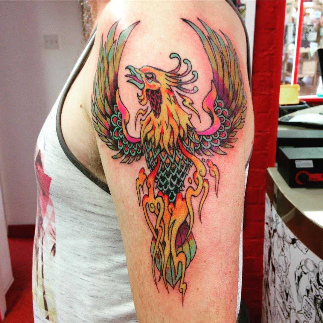 Тату феникс на плече