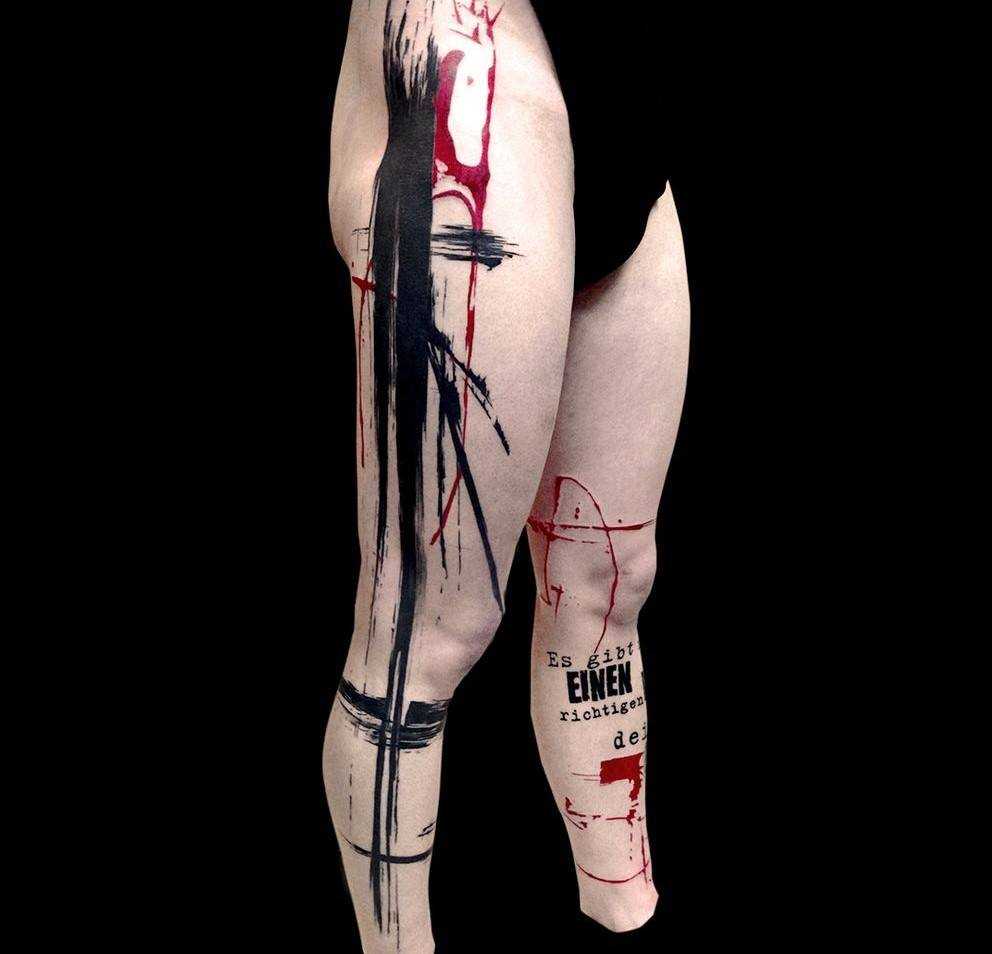 - Тату на ноге, бедре, стопе: