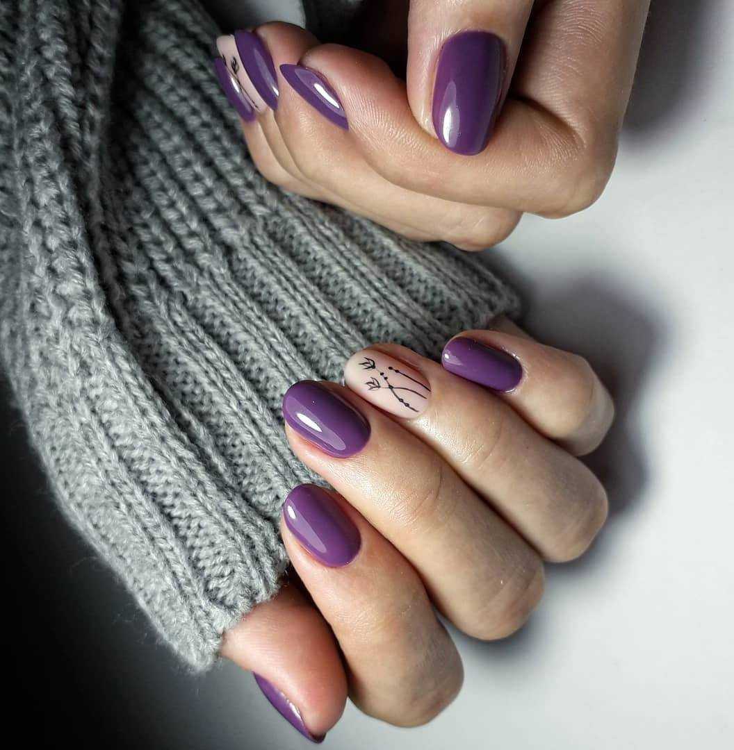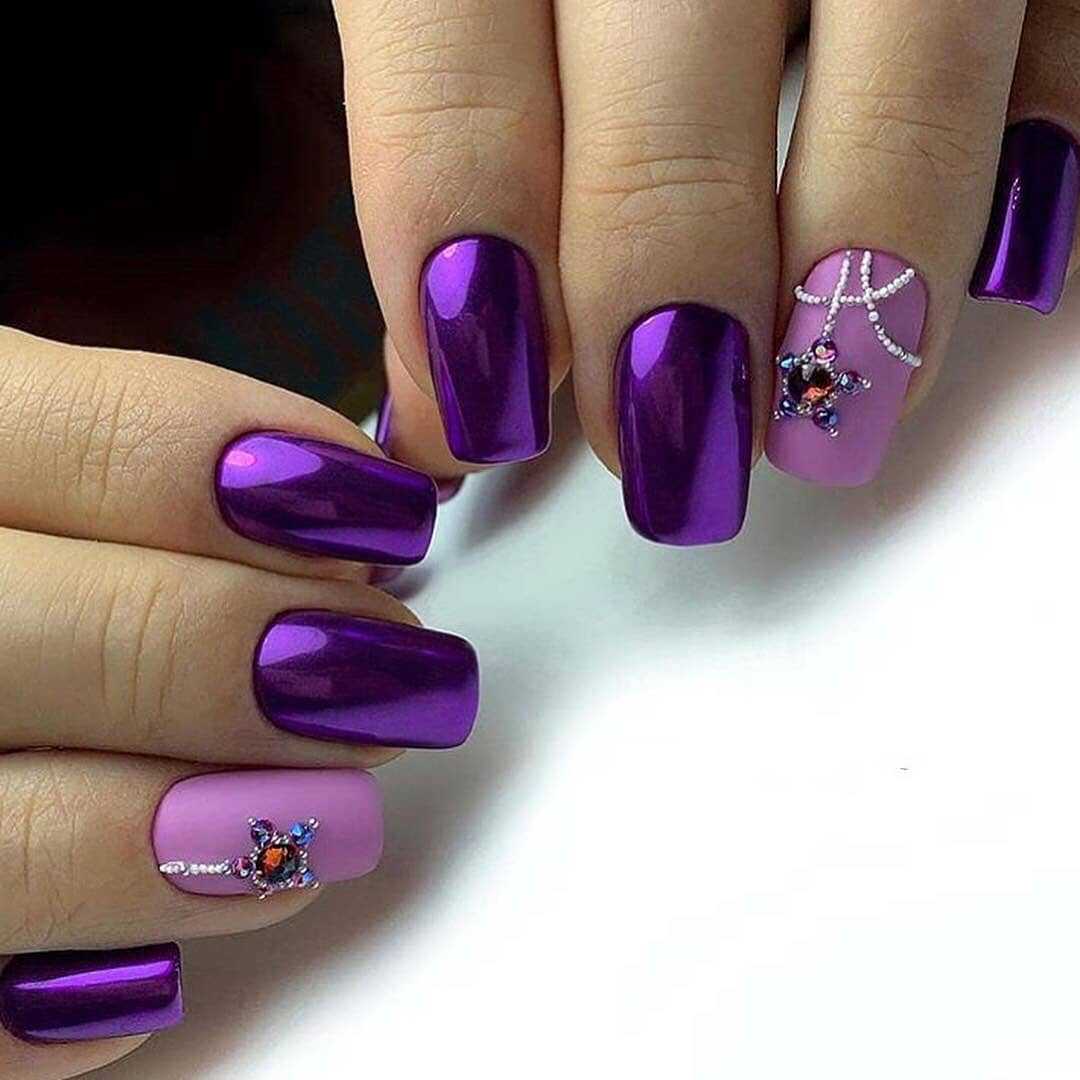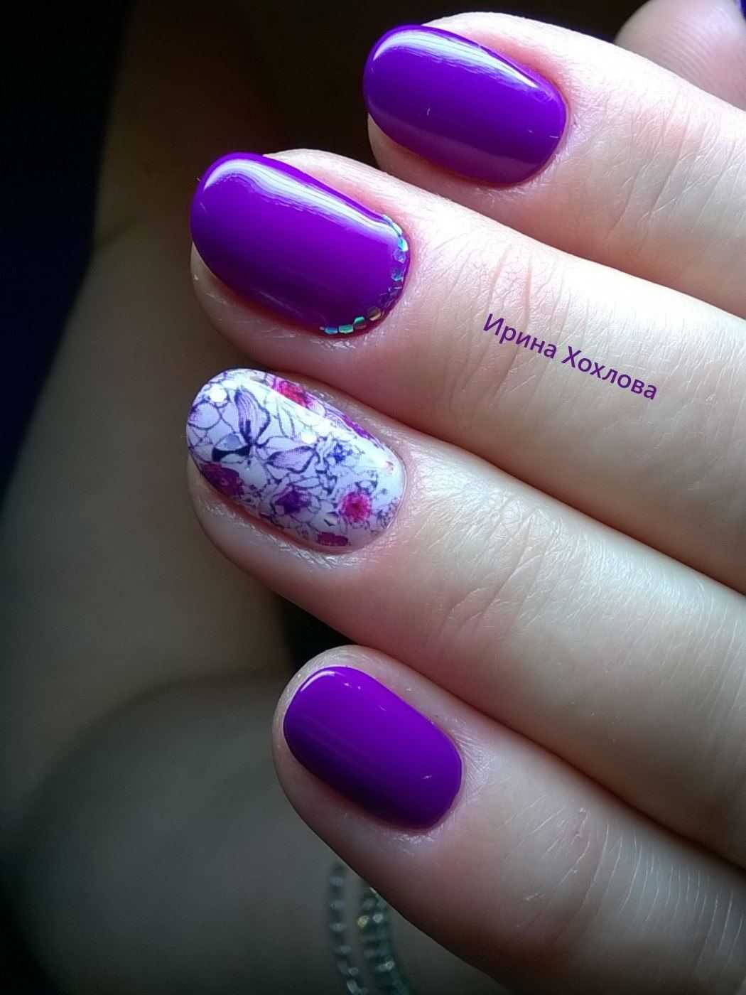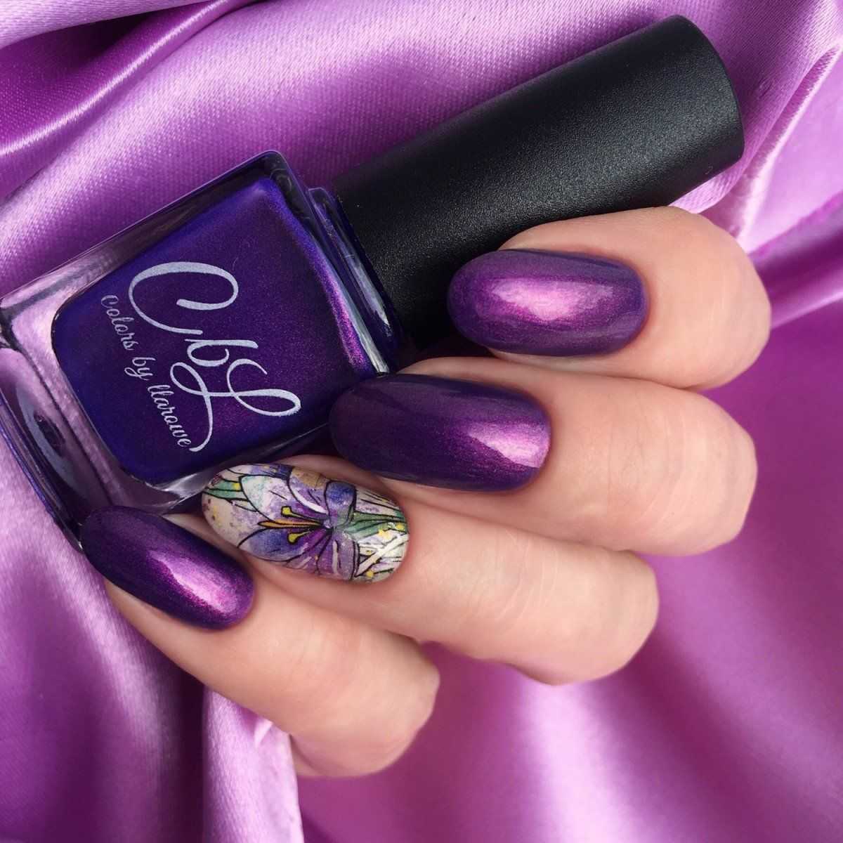 Прекрасный фиолетовый цвет довольно часто используют в качестве основы для любого дизайна. Учитывайте особенности его сочетаемости с другими оттенками. Это обеспечит действительно красивый, современный нейл-арт.