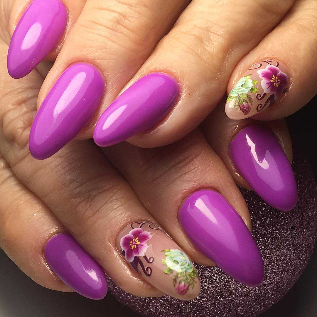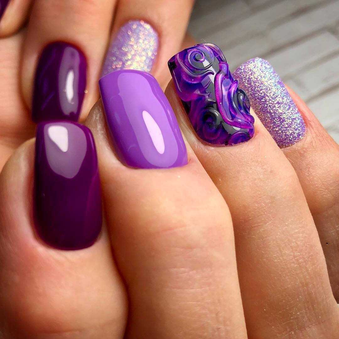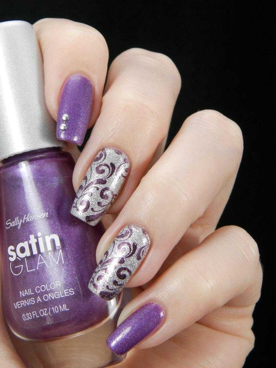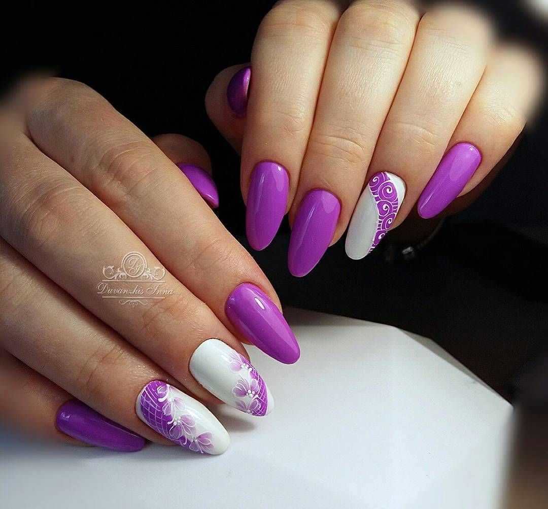 Прекрасный фиолетовый цвет довольно часто используют в качестве основы для любого дизайна. Учитывайте особенности его сочетаемости с другими оттенками. Это обеспечит действительно красивый, современный нейл-арт.