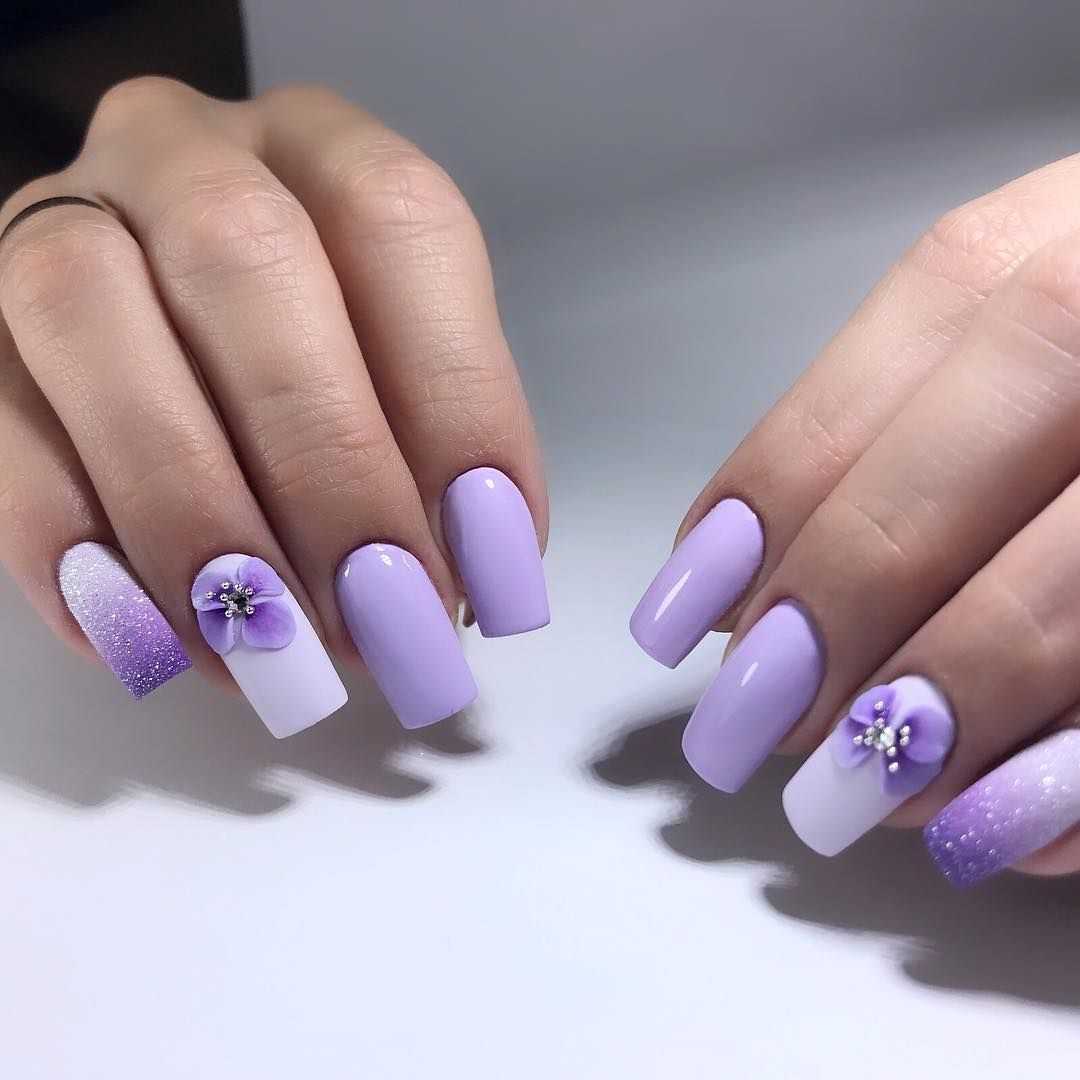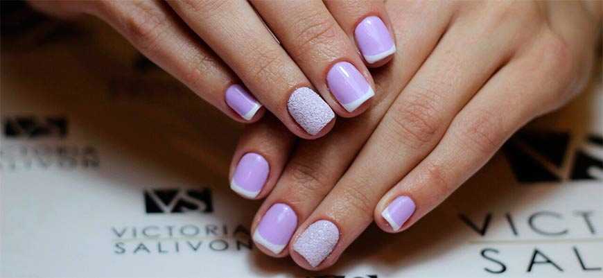 Оттенки лаванды, сирени, фиолетового способы корректировать недостатки ногтевых пластин и отлично подходят для любой их длины.