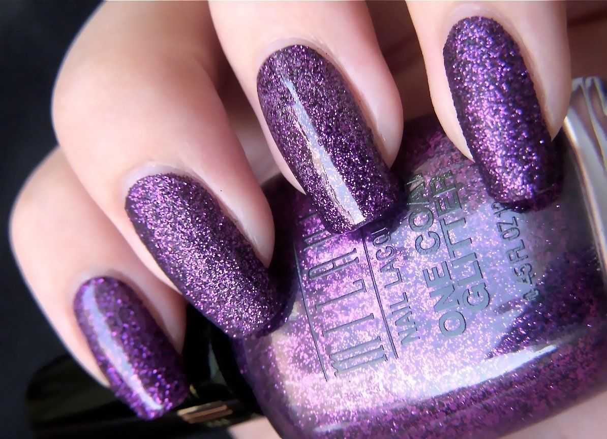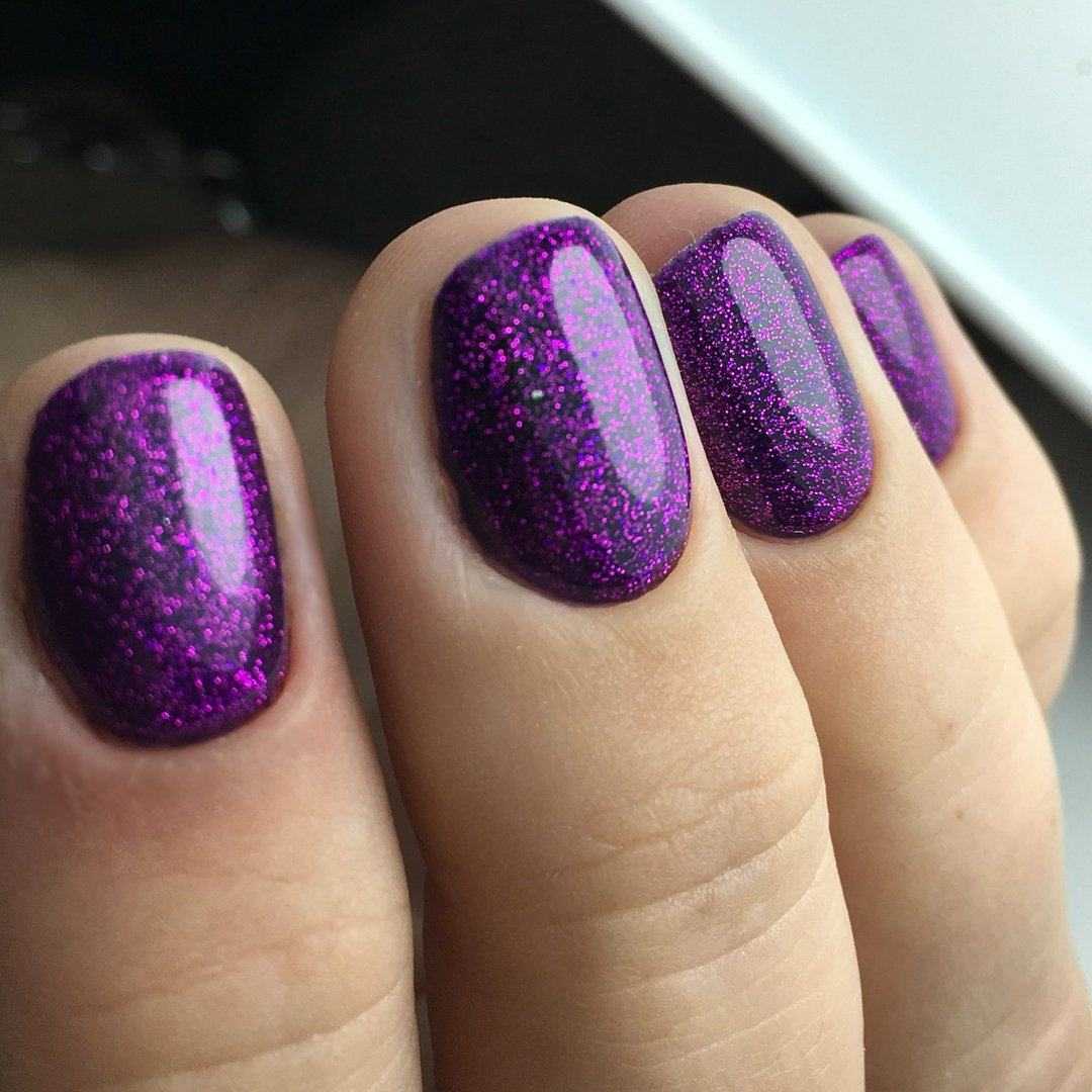 Еще один фиолетовый маникюр с блестками, ведь блеска много не бывает.
