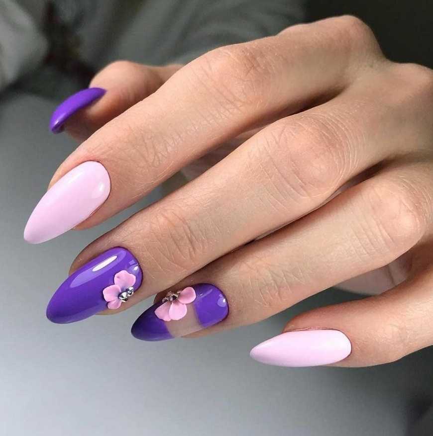Розово-фиолетовый маникюр – это очень нежное сочетание для легких и романтичных девушек.