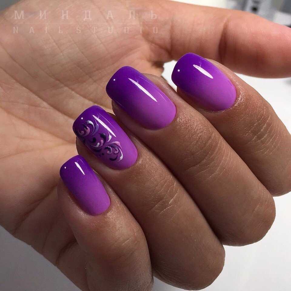 Однако, несмотря на кажущуюся сложность, фиолетовый активно используется в дизайне ногтей. Комбинируя различные техники, цвета и элементы декора можно создать современный маникюр на любой случай жизни.