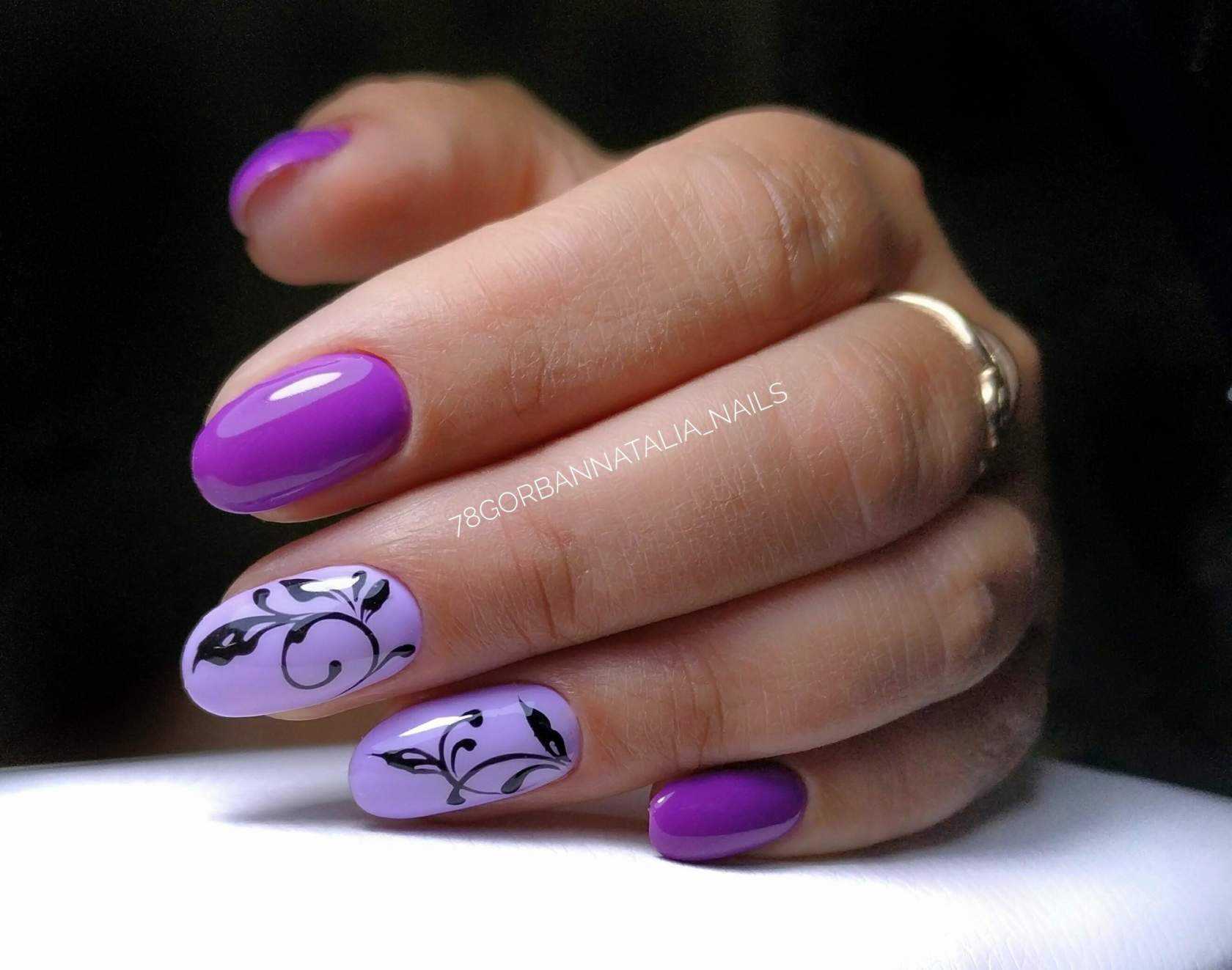 Розовый просто создан для сиреневых тонов. С их помощью можно воплотить в жизнь нежный романтический дизайн маникюра. Стоит руководствоваться правилом — чем темнее и интенсивнее розовый тон, тем темнее и сочнее должен быть фиолетовый.