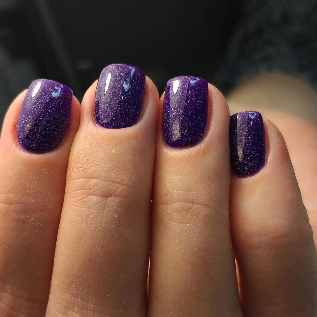 Квадратные ноготки остаются на пике популярности уже не первый сезон. Отличительная особенность — ровные уголки на краю пластины. Квадратной форме больше подходят сочные темные фиолетовые оттенки. Светлые тона лака из сиреневой гаммы визуально расширяют пластину.