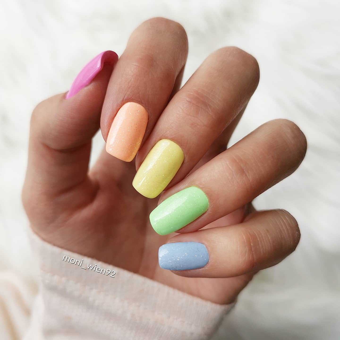 Желтый и мятный — это два лидирующих цвета летнего сезона 2023 года. По всей цветовой гамме они идеально перекликаются друг с другом создавая при это шедевральный результат. Добавьте несколько геометрических линий ярко желтого цвета или нарисуйте им цветок на благородном мятном фоне. Для тех, у кого нет времени и желания заморачиваться с дизайном, nail мастера предлагают добавить многогранности мятному маникюру, окрасив в желтый цвет один из ногтей.