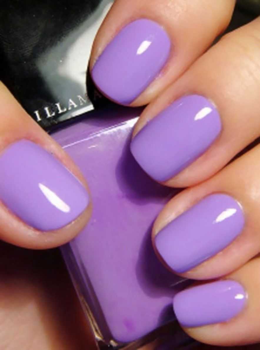 Оттенки у сиреневого маникюра совсем не скучные, они подойдут и для однотонного покрытия. Хорошо будут смотреться также матовые сиреневые ногти. А элегантным элементом дизайна могут стать серебристые полоски или лунки.