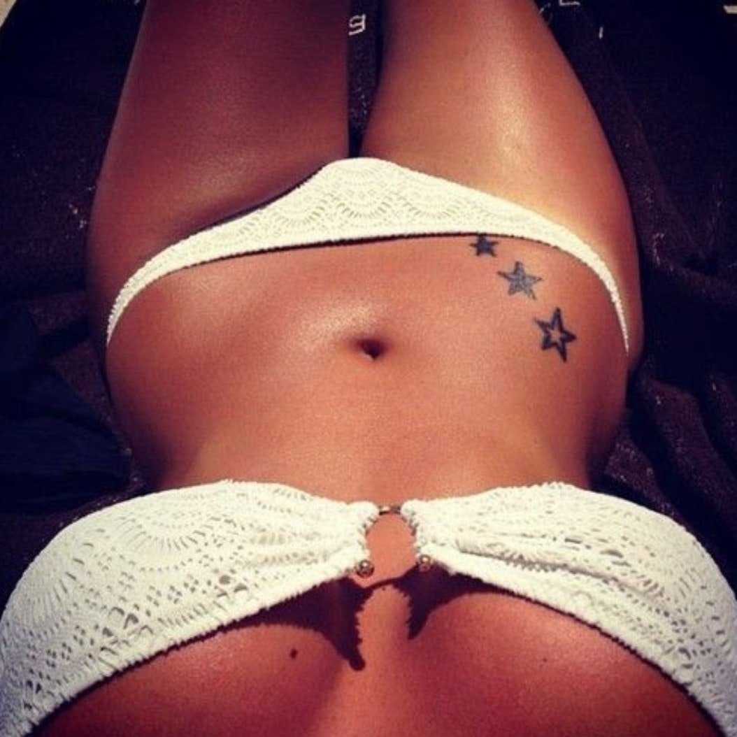 - Звездочки и сердечки. Это отличные и ни к чему не обязывающие символы. Они не несут в себе какого-либо дополнительного смысла и просто исполняют свое прямое предназначение — украшают тело обладательницы. Звездочки и сердечки могут быть как в единственном экземпляре, так и группой. И в том и в другом случае такая татуировка смотрится очень сексуально и гармонично.
