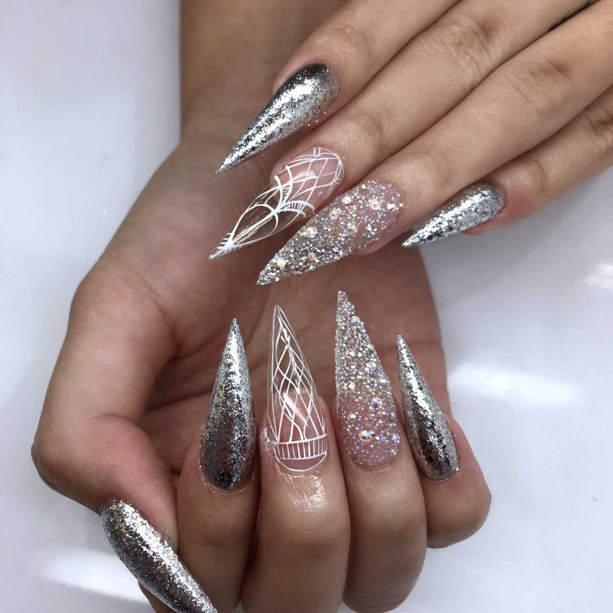 Также можно использовать небольшие стразы, размещенные на ногтевой пластине в виде россыпи или узора. Кроме того, блестки могут быть расположены в виде различных геометрических узоров, таких как линии, ромбы, треугольники и другие.