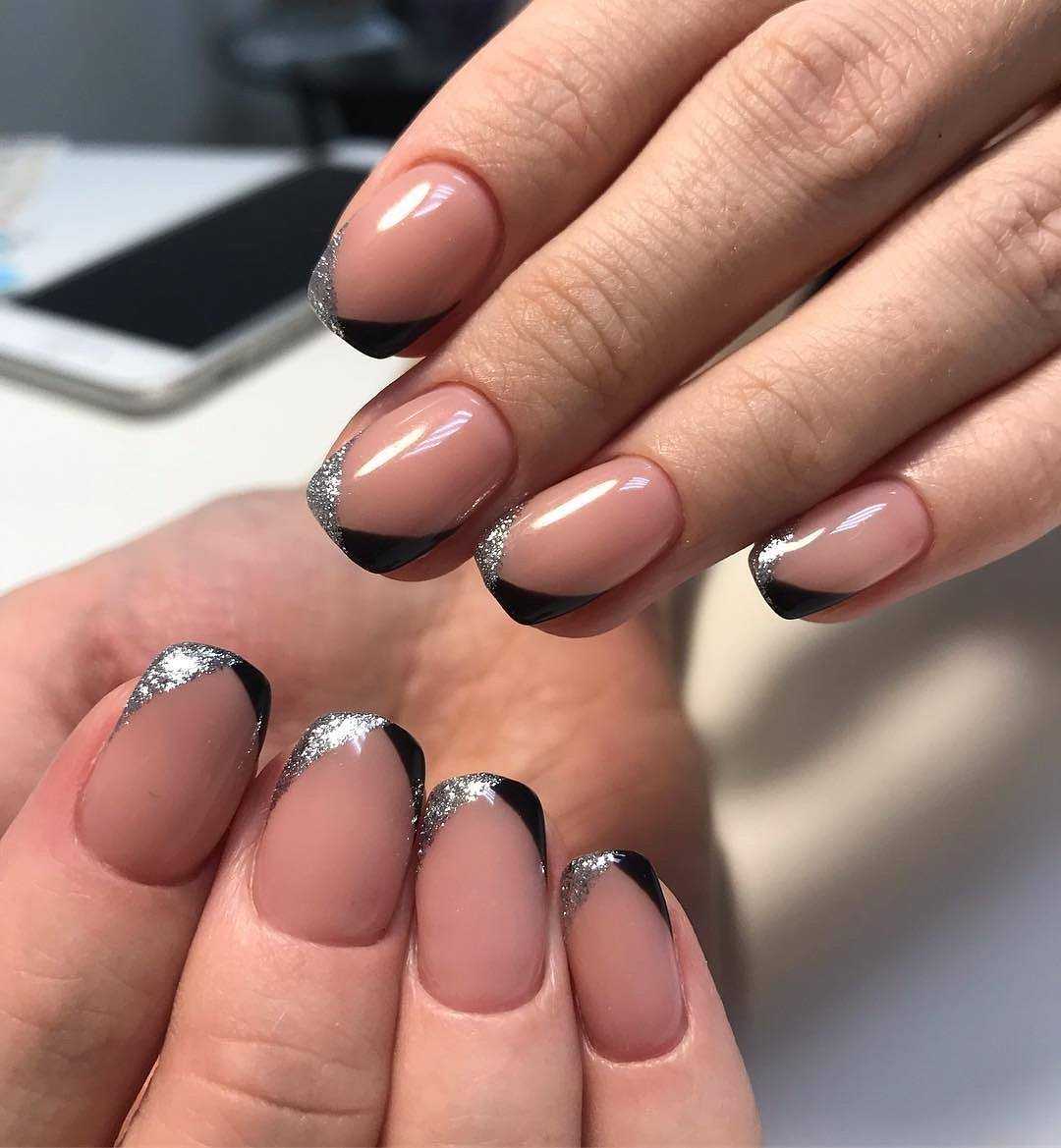 Выбранное украшение прикрепляется к ногтю с помощью клея. Обычный вариант фан-френча, который останется популярным и в 2022-2023 годах, заключается в окрашивании ногтевой пластины бесцветным лаком для ногтей с контуром из блестящего песка или глиттера.