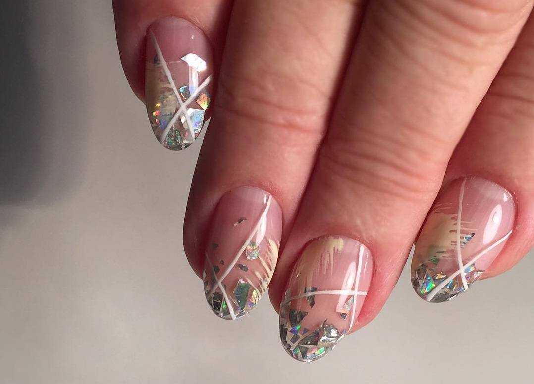 Оформить ноготки можно не только с помощью рисунка. Добиться оригинального эффекта можно даже с помощью декоративных элементов. Все чаще для этого используют специальную фольгу. Небольшие оттиски на кончиках или же линия улыбки с таким дизайном смотрится невероятно красиво. Но в данном случае необходимо подобрать подходящую цветовую гамму.