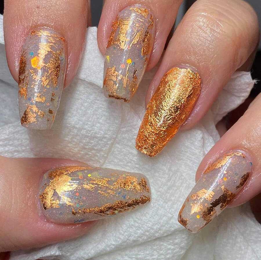 Наиболее популярными являются золотые и серебряные блестки, считается, что они всегда будут уместны для любого вида маникюра. Поэтому сезон нейл-арта 2020-2021, объявляется сезоном золотых и серебряных блесток.