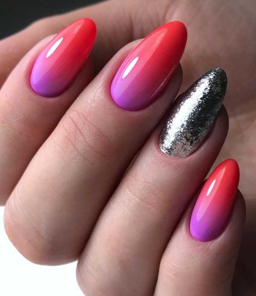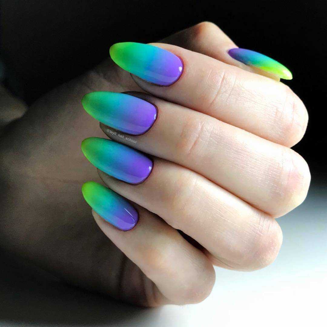 Если вы любите неожиданные и смелые сочетания ярких оттенков в маникюре, модная техника омбре дает вам полную волю в импровизации. Трендовый маникюр градиент 2021-2022 может состоять из самых неожиданных цветовых сочетаний.
