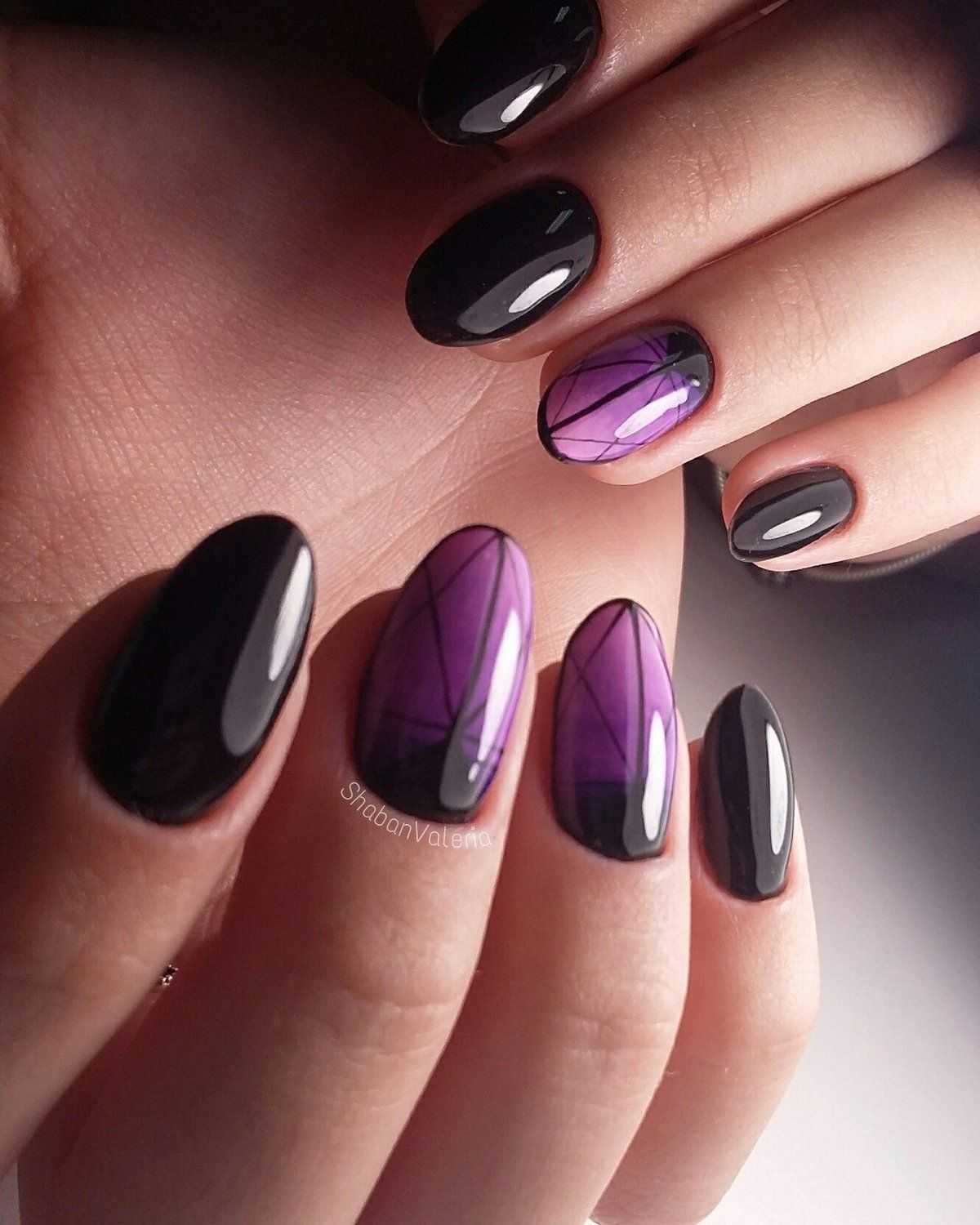 Еще один способ выделиться – сделать на трех пальчиках растяжку цвета, а два (как правило, это средний и безымянный), покрыть каким либо одним цветом из тех, которые были использованы для градиента.
