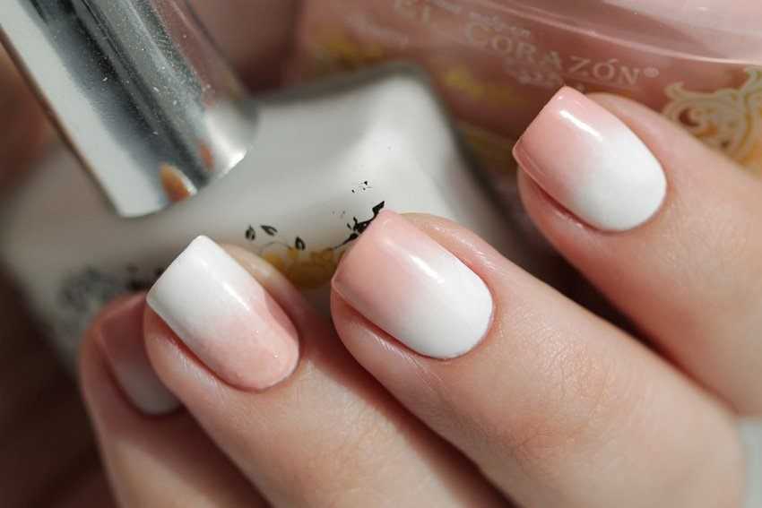 Самый востребованный вариант френча-омбре в 2017 лучше всего выполнять в классических тонах: бежевая или розовая пастельная гамма в сочетании с белым.