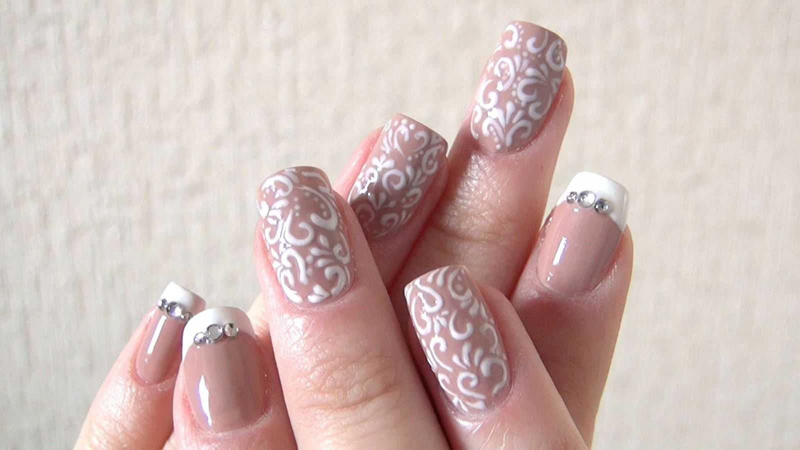 Французский маникюр – лучшее решение для такого важного мероприятия. Однако, не стоит ограничиваться классическим вариантом. Попробуйте добавить несколько страз, бусин или же цветок в минималистическом стиле