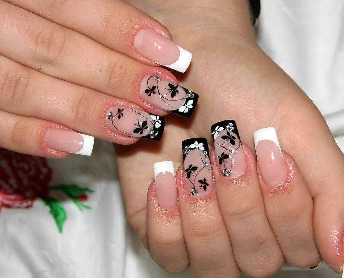 Иногда полоски используют для контрастного эффекта на фоне белого или другого цвета лака. Один из самых необычных вариантов френч маникюра – цветочные узоры. Они могут быть выполнены в разных цветовых гаммах. Например, перламутровые цветы и пастельные цветочки будут идеально смотреться на светлой основе. Также можно использовать необычные цветы, которые будут придавать ногтям интересный и необычный вид.