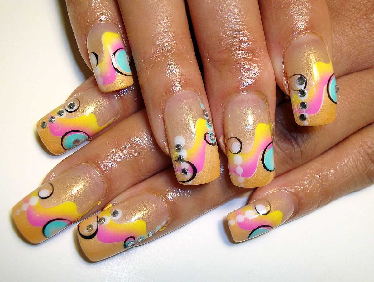 Разноцветные ногти с рисунком