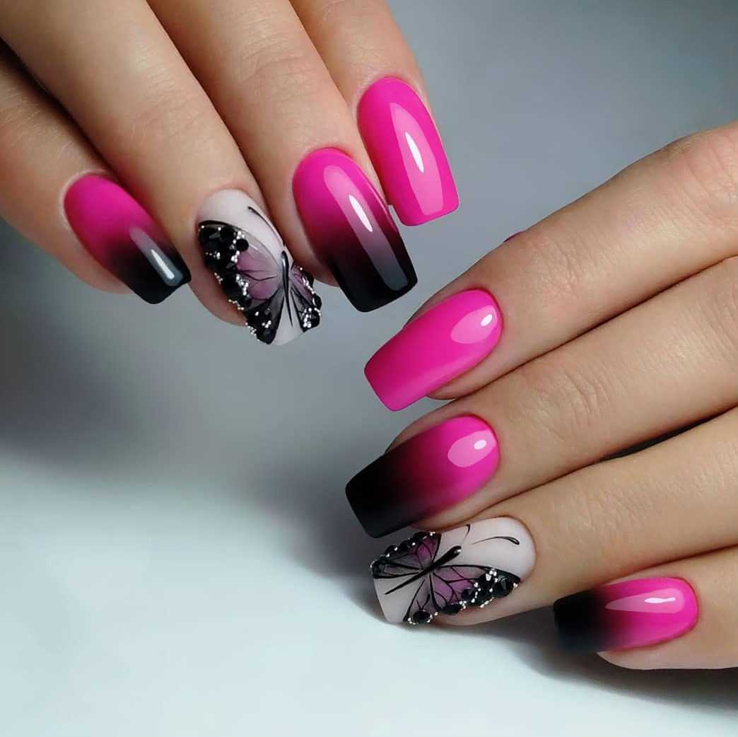 Для обладательниц длинных ногтей предпочтительнее выбрать изящное черное кружево с дымчатым переходом.