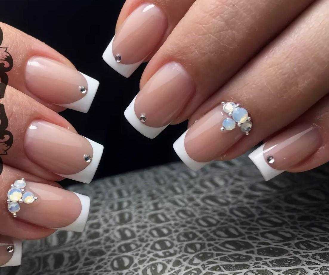 Маникюр со стразами на ногтях: идеи стильных френч-артов