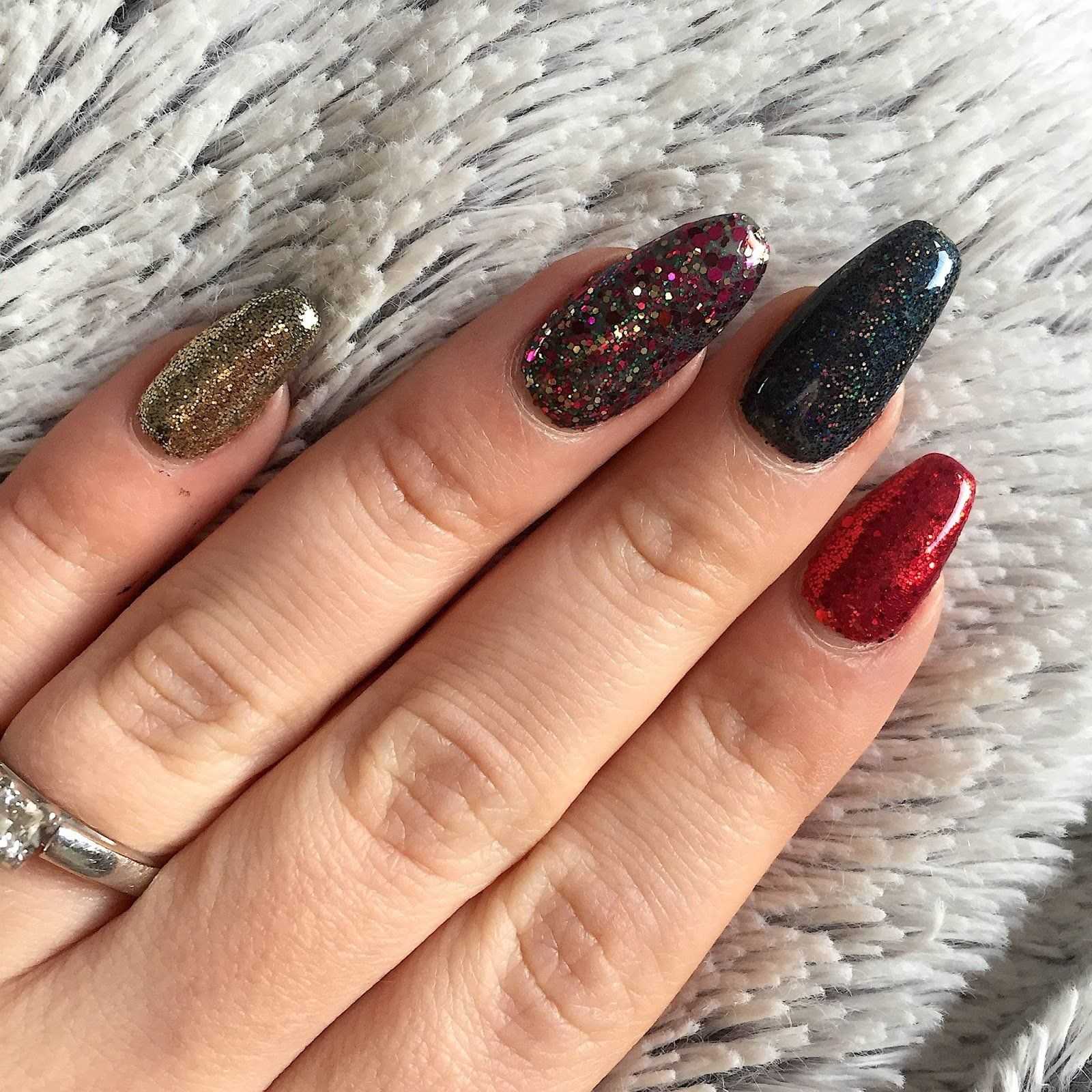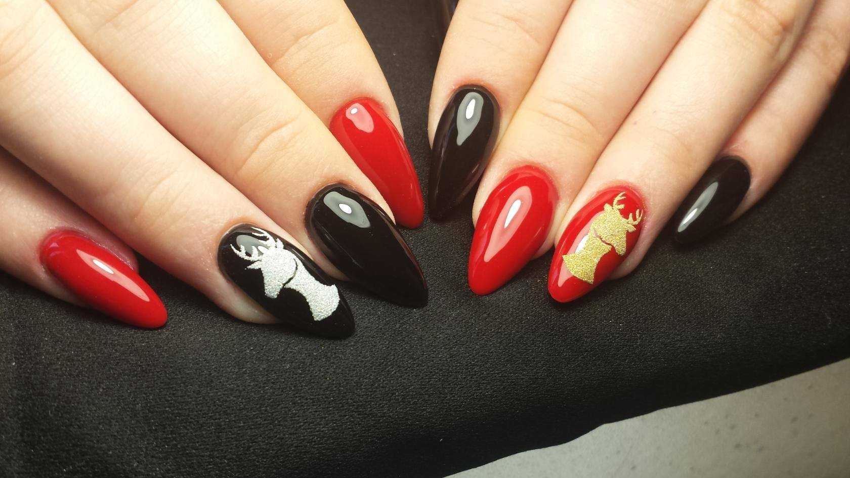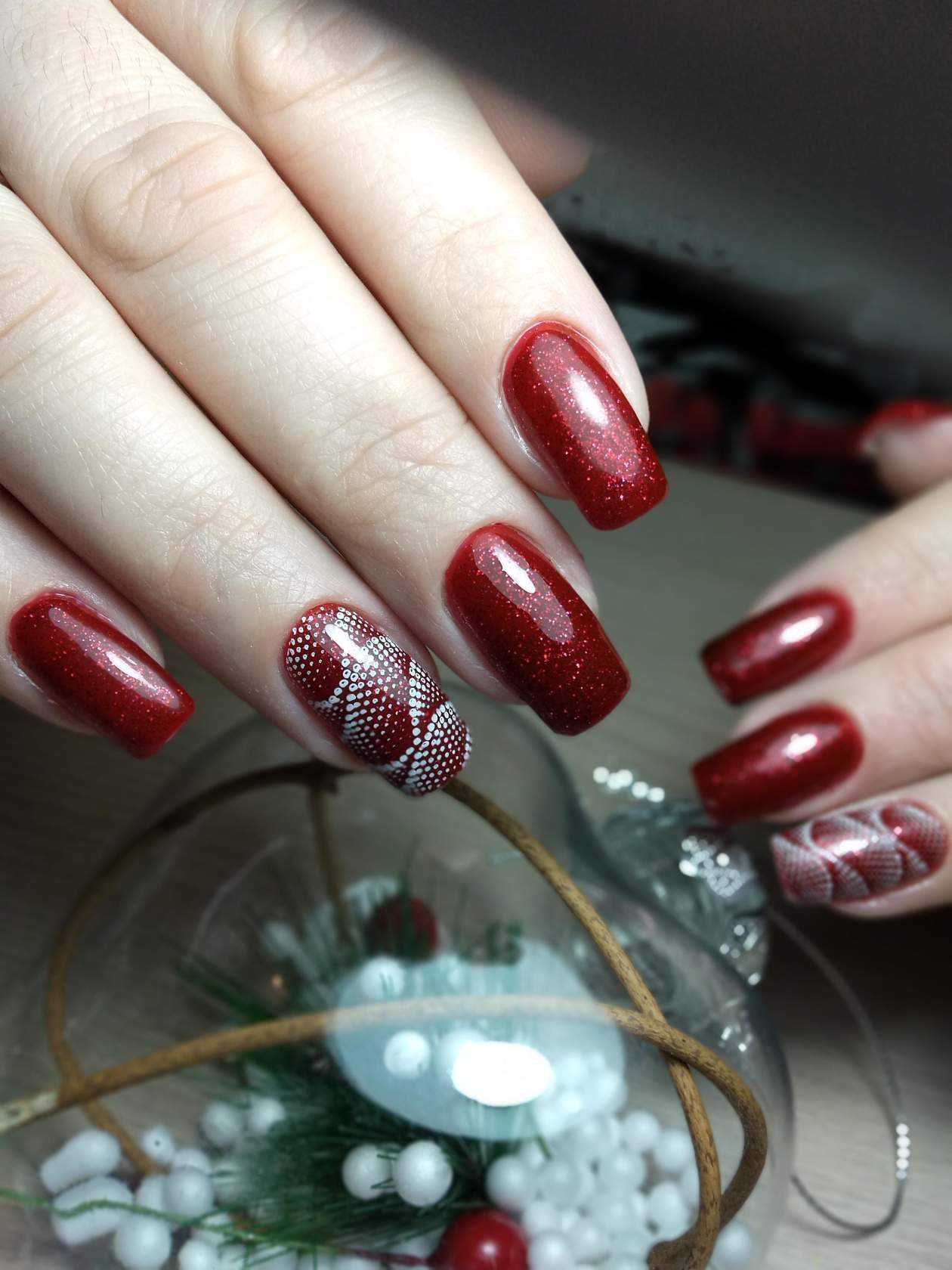 В качестве основы хорошо подойдут, так называемые, бархатные оттенки — бордовый, глубокий изумруд, сапфировый. Можно акцентировать один из ногтей и щедро украсить стразами, имитирующими драгоценные камни, узорами и другим нейл-артом
