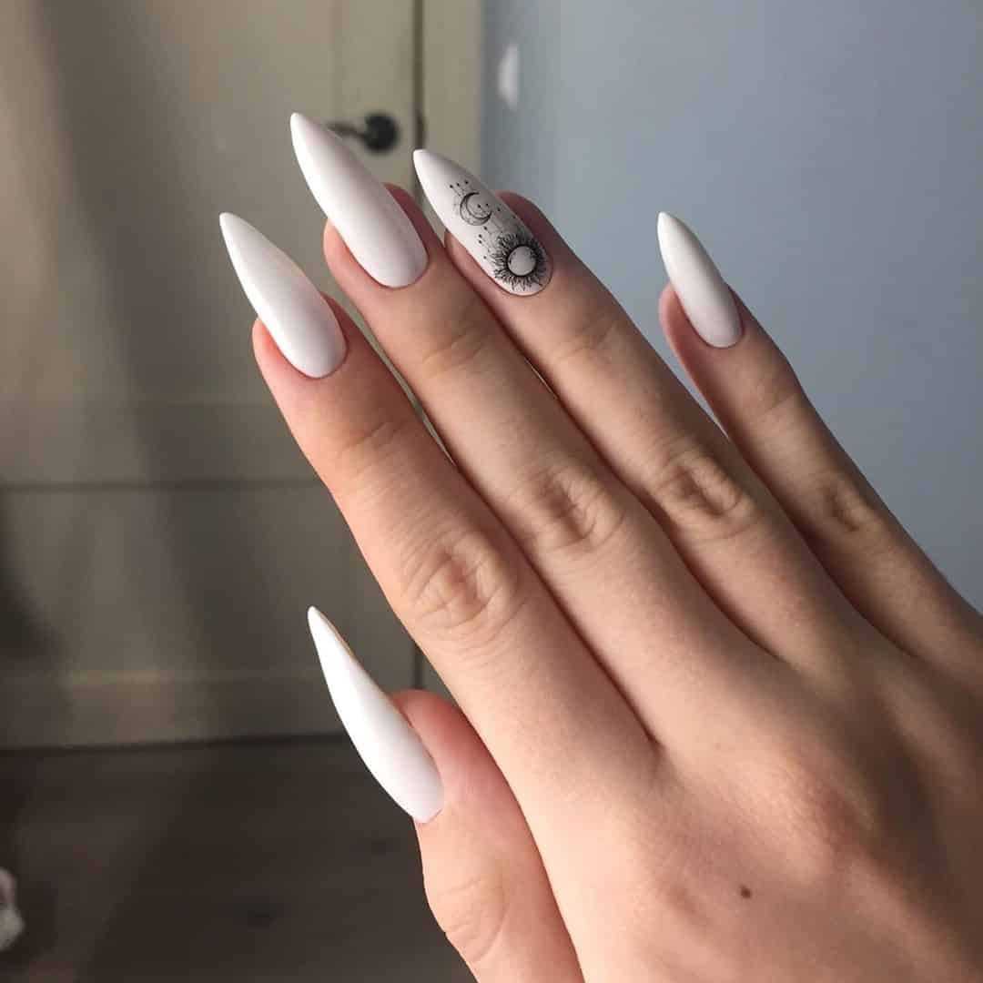 В светлом варианте экстравагантная форма может быть и вовсе незаметной, так что светлый вариант заостренного маникюра – отличный вариант для тех, кто только желает попробовать для себя такой вариант. Для более дерзких особ, которым хочется изюминки — можно сделать и в черном варианте, тематически акцентировав один.