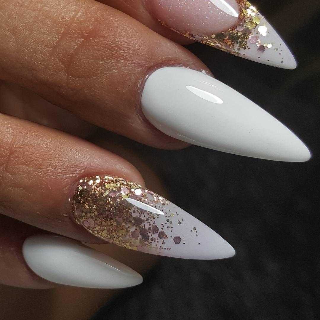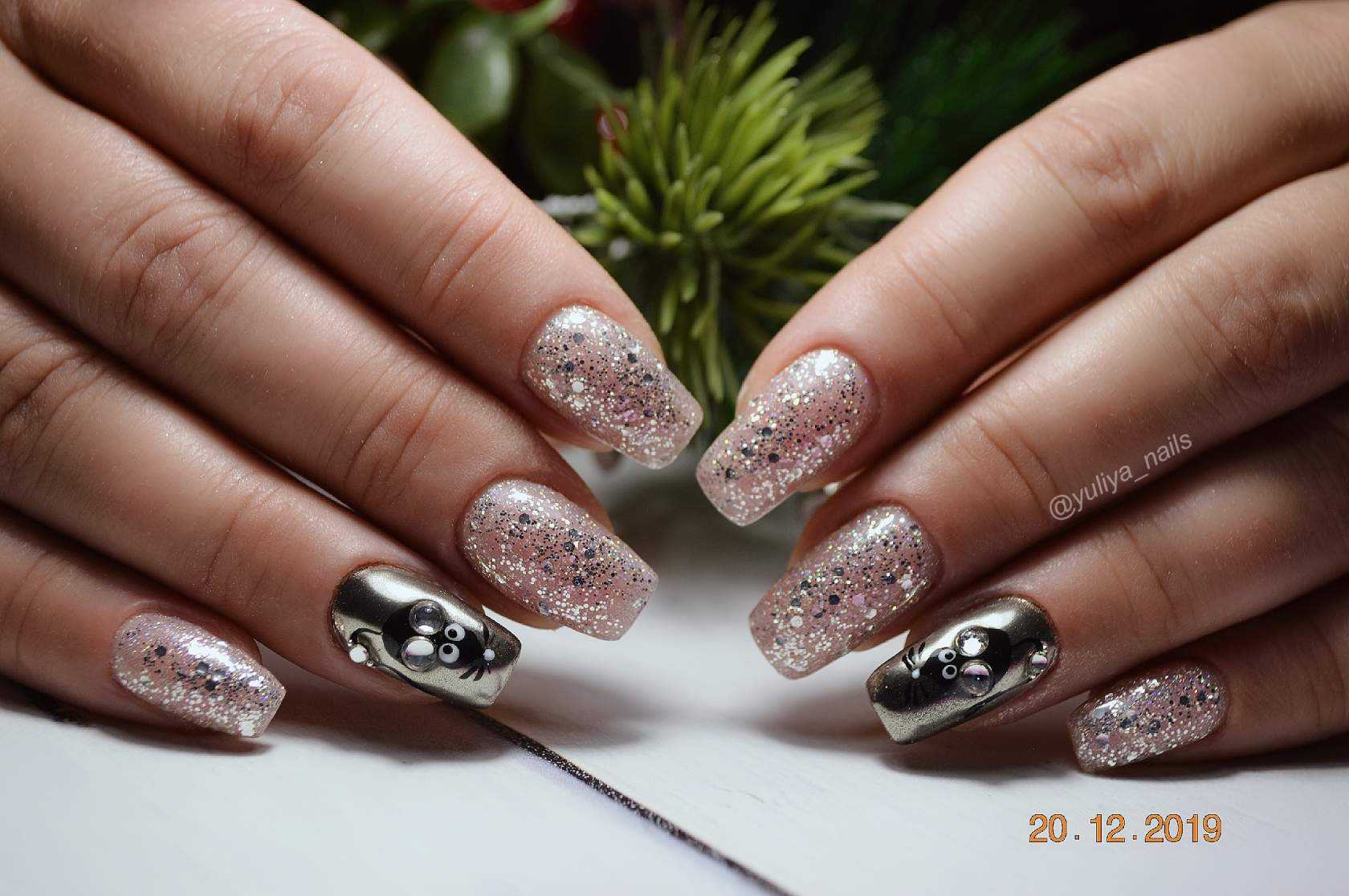 Вы всегда можете создать уникальные и интересные идеи на длинных ногтях. Одними из самых интересных были изысканные глиттерные узоры, блестящий френч, градиентная растяжка шиммером, узоры конфетти разных размеров, сочетание нескольких техник и многое другое. Блестящие детали в дуэте с рисунками также очень красиво смотрятся в этой длине.