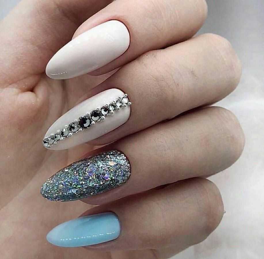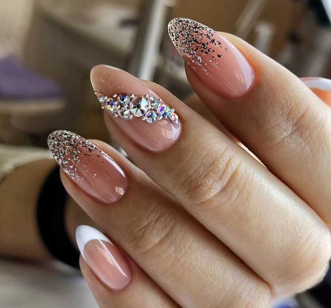 Камни и глиттер можно сочетать между собой в разнообразных вариациях: