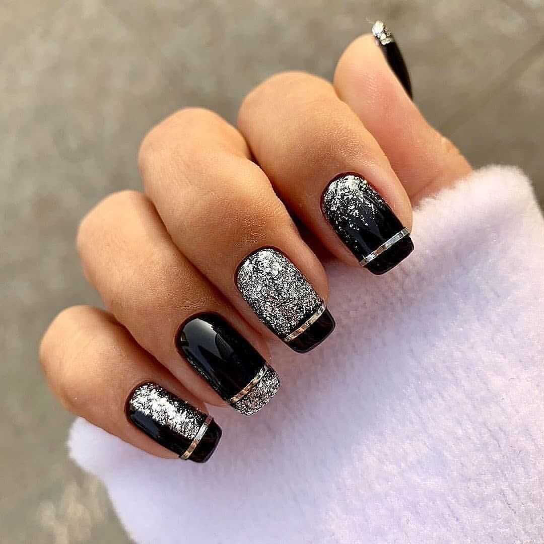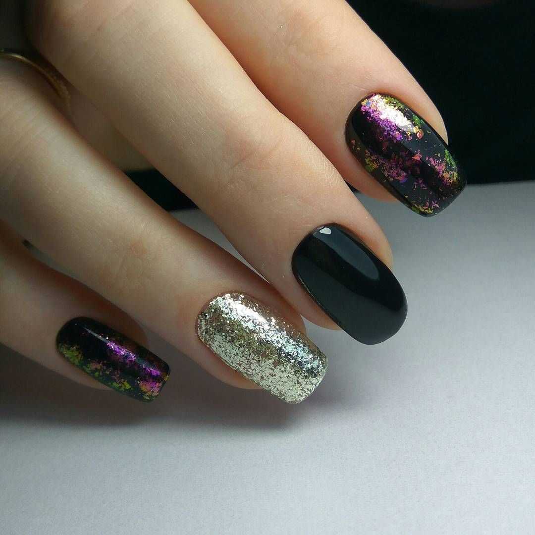 Маникюр с фольгой на коротких ногтях стал трендовым относительно недавно. Чаще всего он выглядит как покрытие с добавлением золота или серебра. Смотрится необычно и богато.