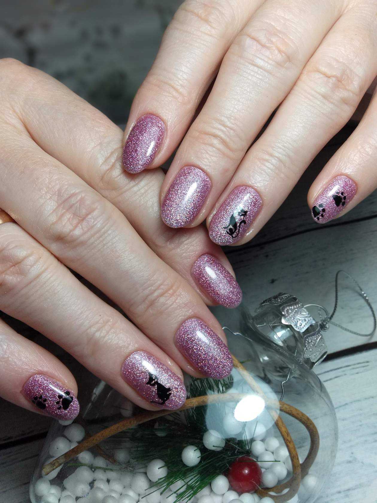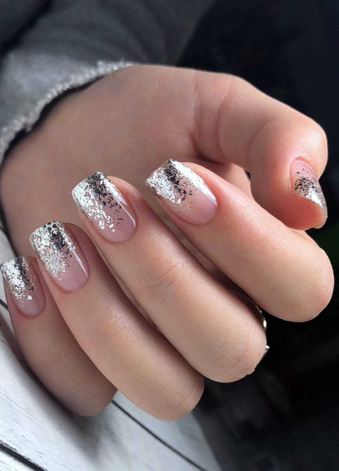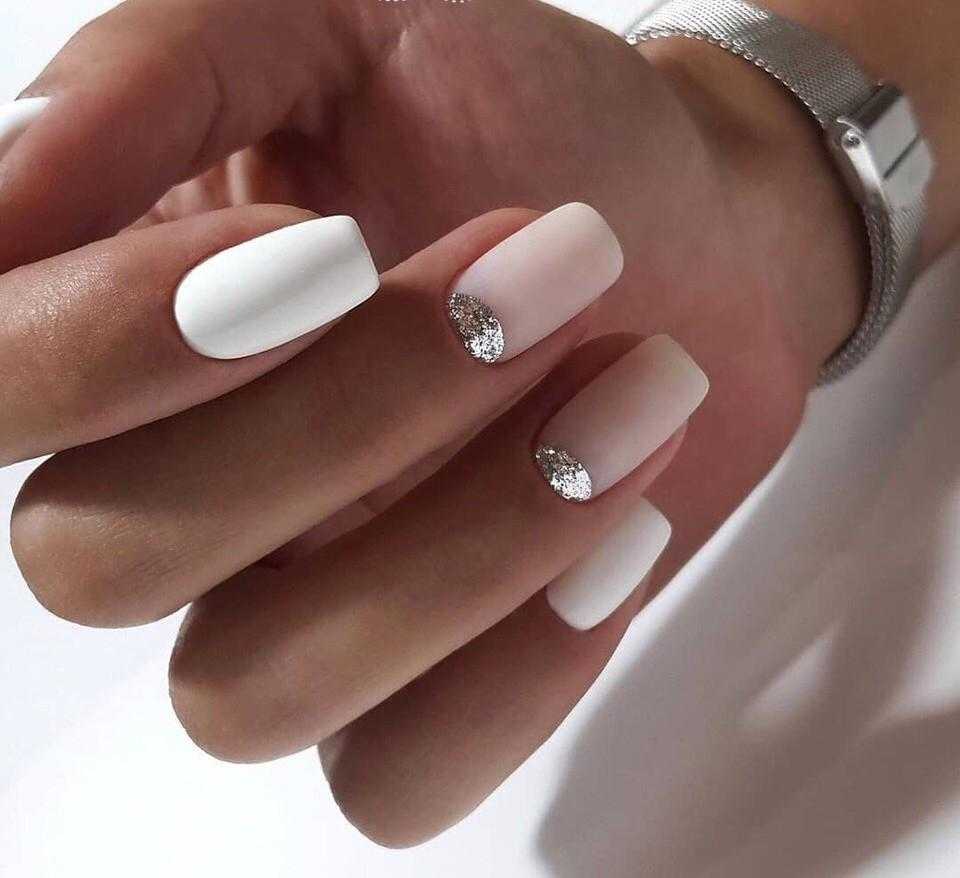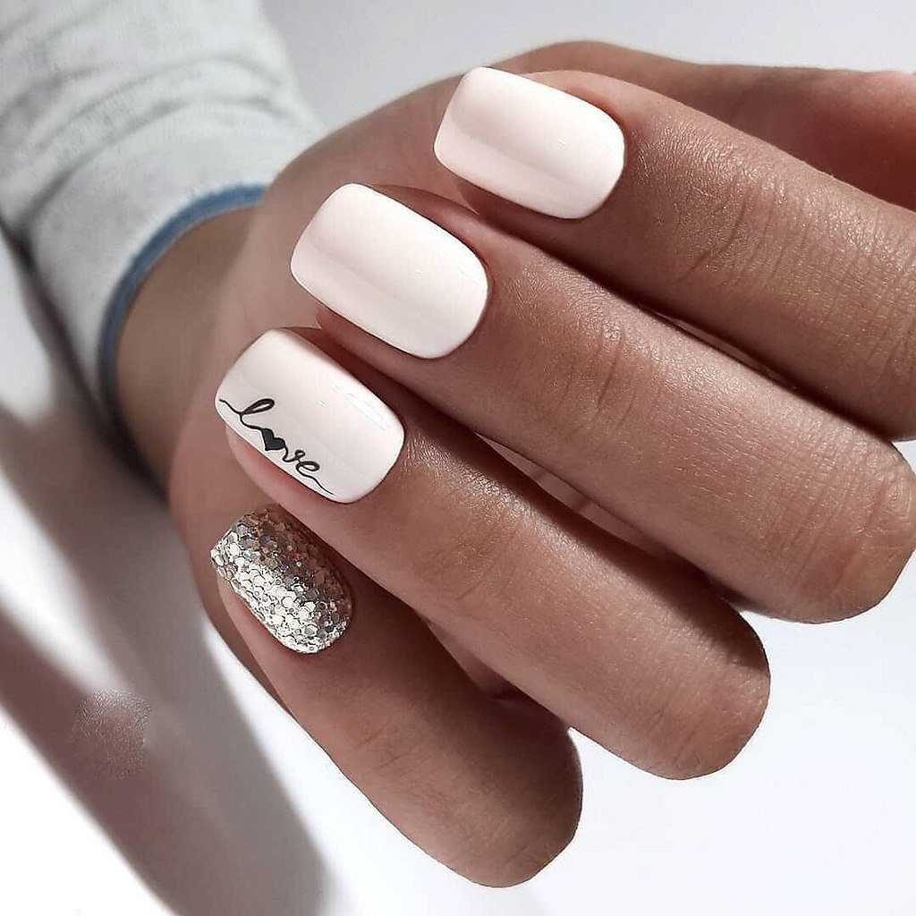 Маникюр с блестками приходится ярким акцентом в образе на коротких ногтях. Блестки, создавая интересную текстуру, не могут остаться незамеченными.