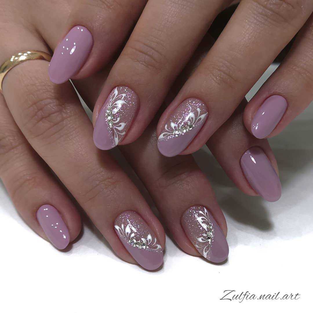 Для ногтей бледных оттенков можно добавить украшения в виде стразов, цветочных узоров, линий, посыпки или перламутра. Красивые однотонные оттенки, совпадающие с цветом кожи максимально зрительно удлиняют пальцы.