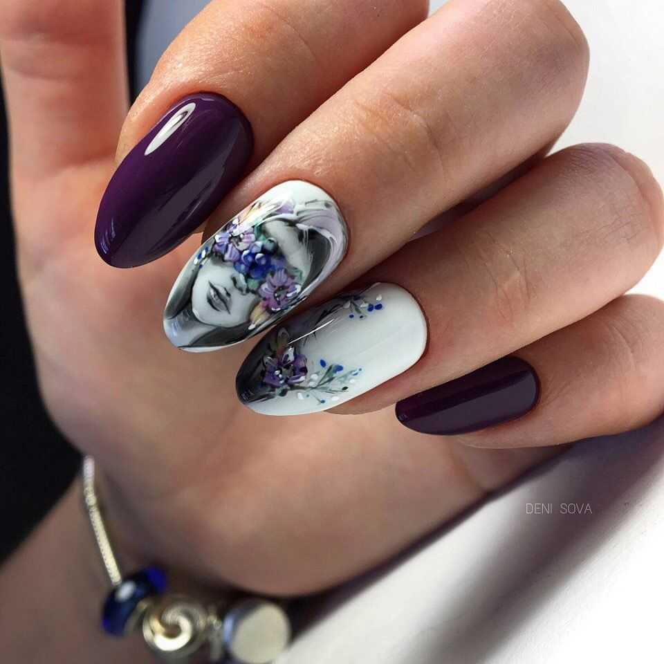 Маникюр с портретами по сути является продолжением тренда с надписями. С помощью изображения вы можете показать окружающим своих кумиров, рассказать о своих предпочтениях и характере. Помимо медиа-личностей, культовых певцов и других знаменитостей размещайте на ногтях героев мультфильмов. Такой маникюр выглядит весело и ярко, отлично вписывается в летний или тематический образ.