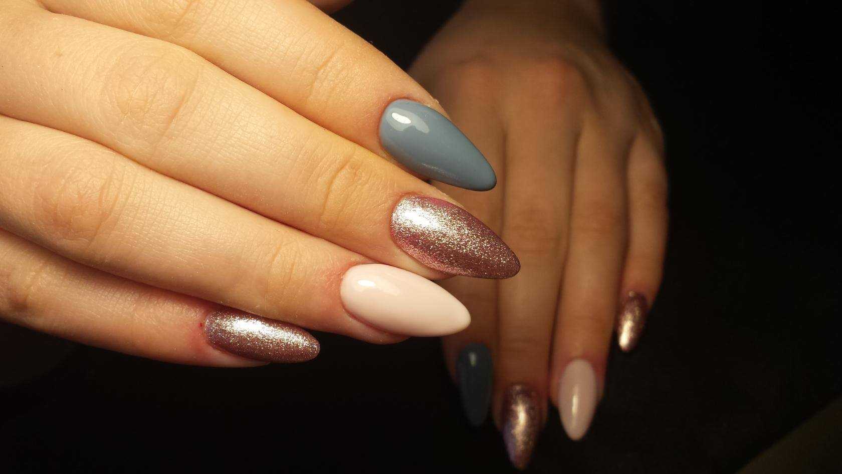 Это решение рискованное и одновременно смелое. Главное учесть цвета. Правильно подобранные оттенки и дизайн не испортят вид ногтей. Самый модный маникюр на сегодня, это сделать на разных руках «перепелиное яйцо», а на остальных – всегда актуальное однотонное покрытие.