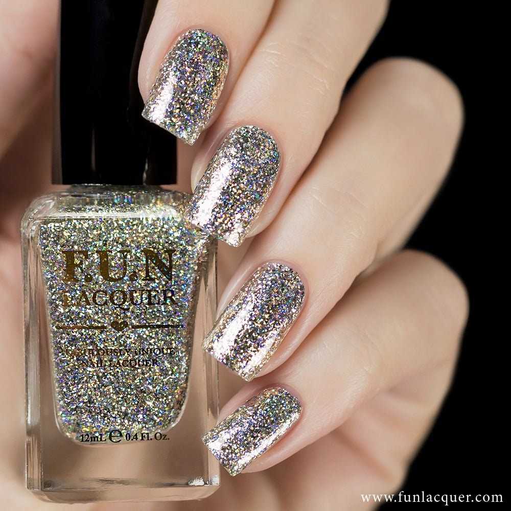 При создании блестящего дизайна используется втирка или лаки, в состав которых входят в большой концентрации светоотражающие частицы.