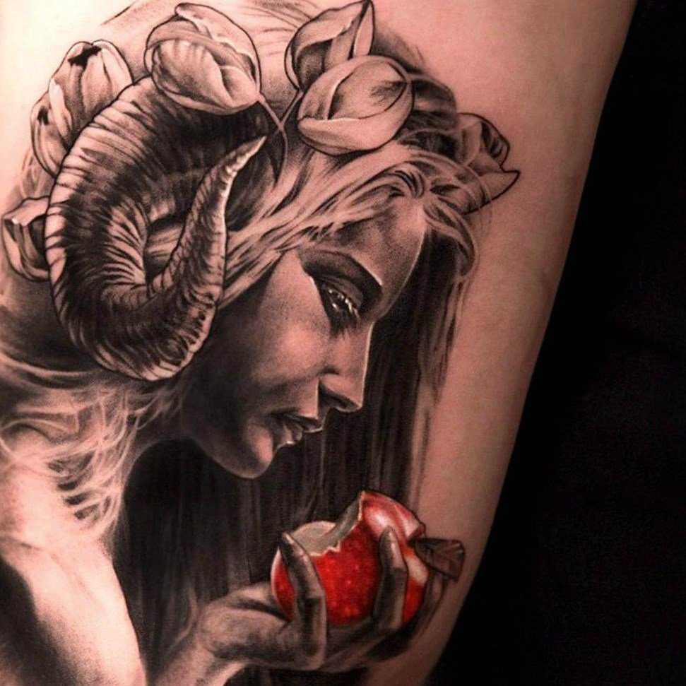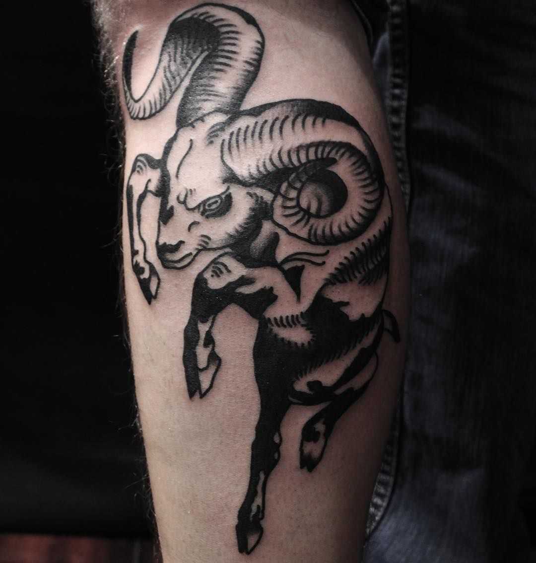 Прежде всего такие тату выбирают для себя носители этого знака. Популярно изображение среди представителей обоих полов. Мужчины предпочитают выбирать более агрессивные образы. Это могут быть изображения рогатого черепа или залитые кровавым цветом глаза животного. Часто символ знака умело вписывается в общий рисунок рукавов. Такие тату подойдут людям страстным и уверенным в себе, желающим подчеркнуть свою огненную натуру.
