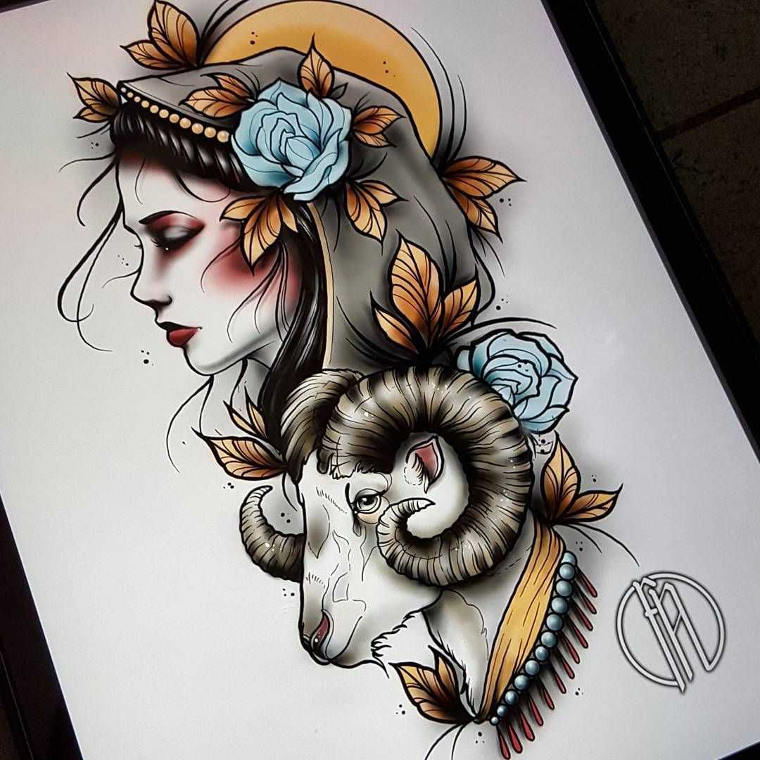 Стили и цветовые решения для татуировки со знаком «Овен»
